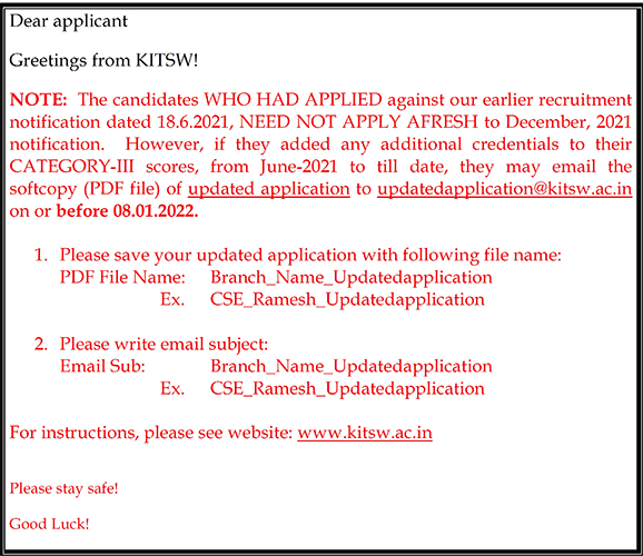 National Employability Award – 2022 presented to KITSW for being amongst the top 10% colleges in India that excelled in AMCAT for the 2nd consecutive year by SHL (Aspiring Minds). Date: 10th October, 2021.