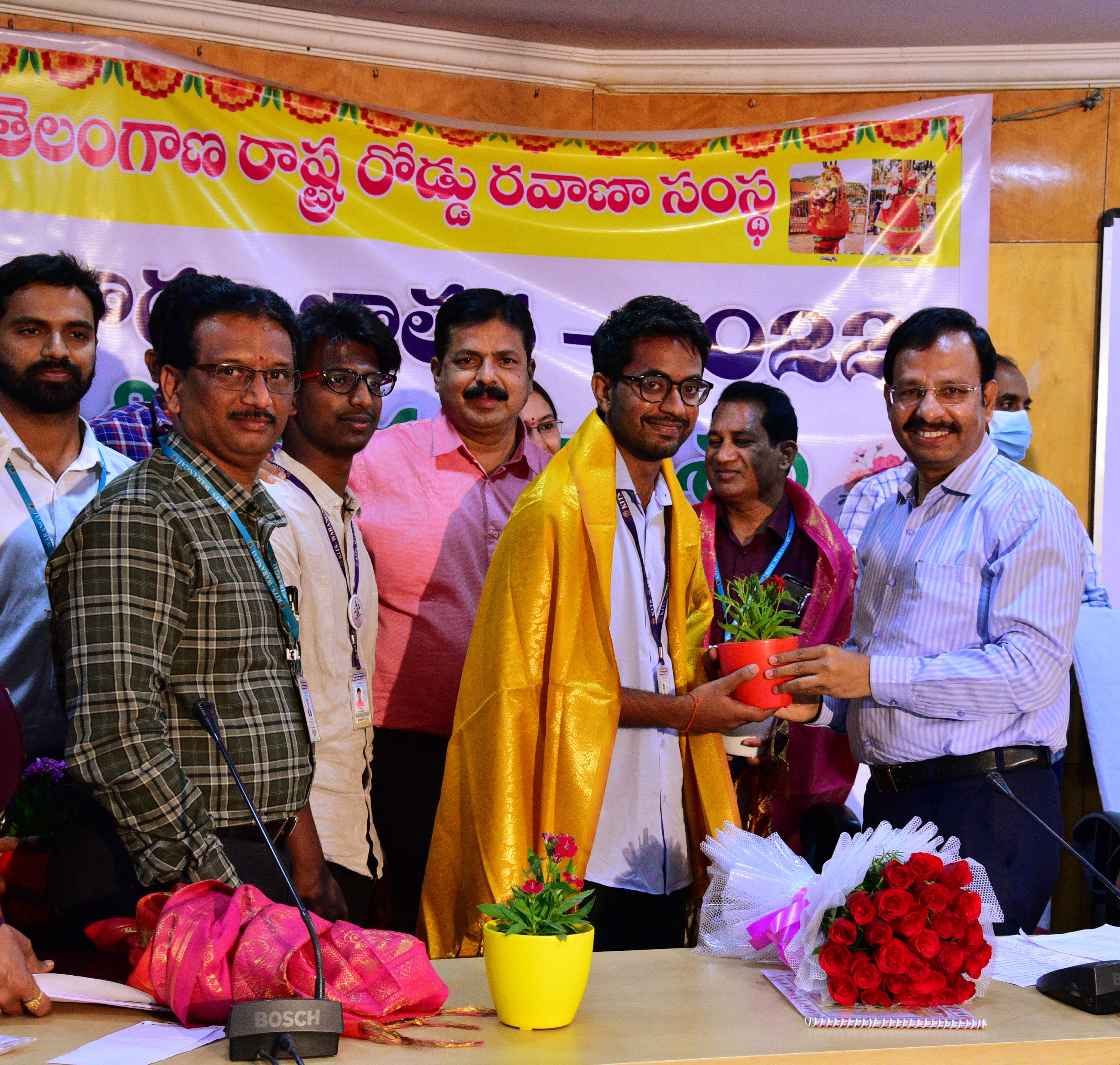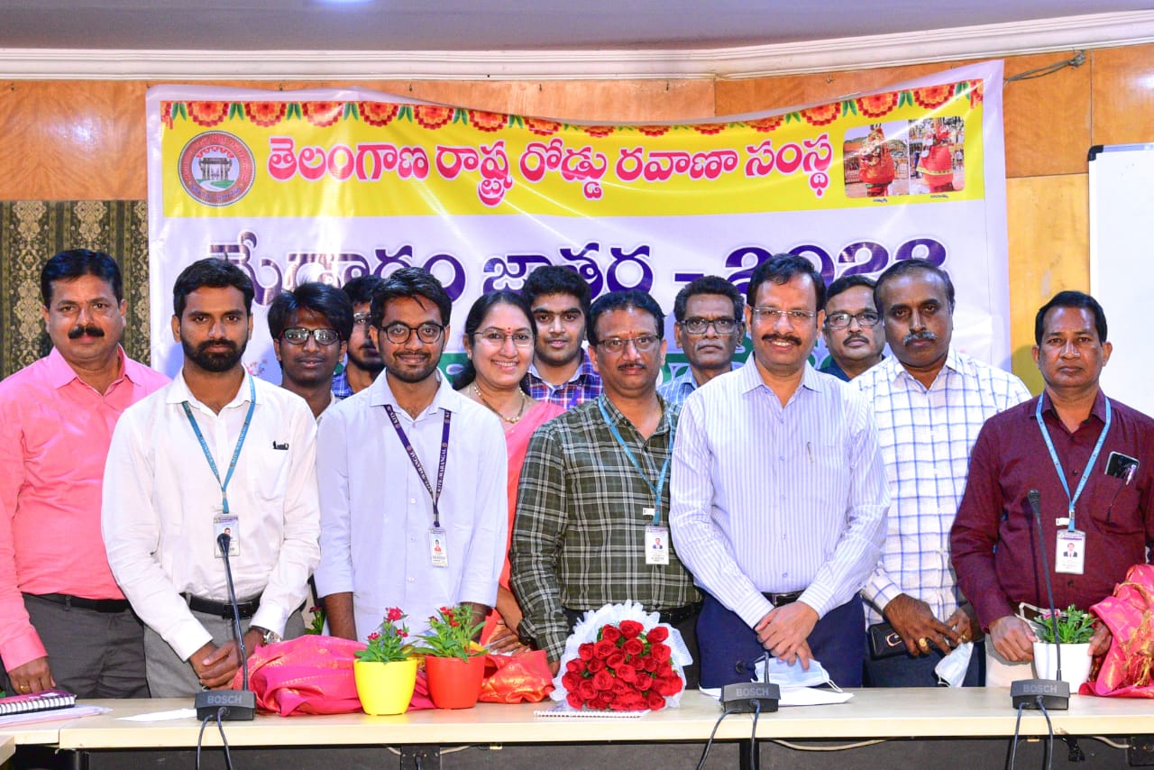 Sri V.C Sajjanar M.D, TSRTC has felicitated the students and faculty involved in the development of TSRTC MEDARAM JATHARA App, on 04.02.2022 at Bus Bhavan, Hyderabad.