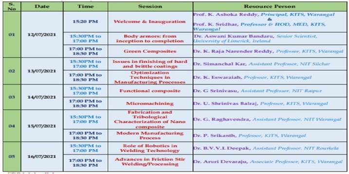 ISTE Sponsored One Week Online Faculty Development Programme (FDP) on “EMERGING TRENDS IN ADVANCED MATERIALS & MANUFACTURING PROCESSES (ETAMMP-2021)”