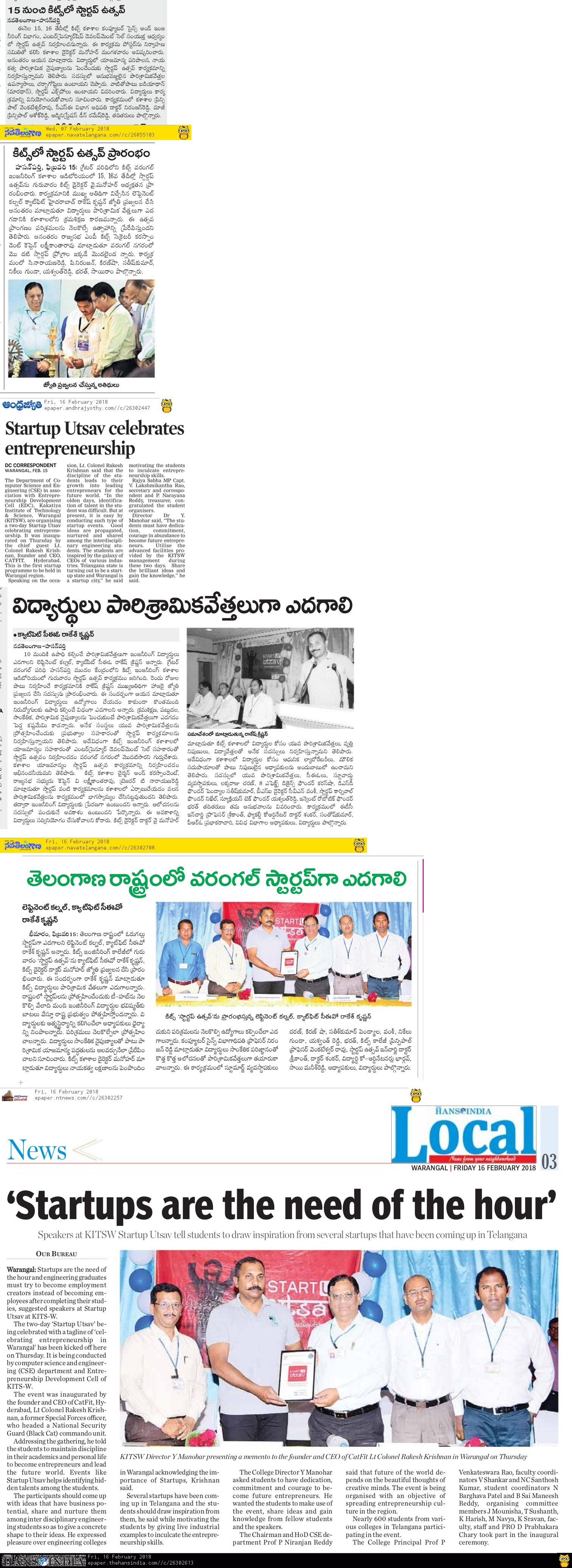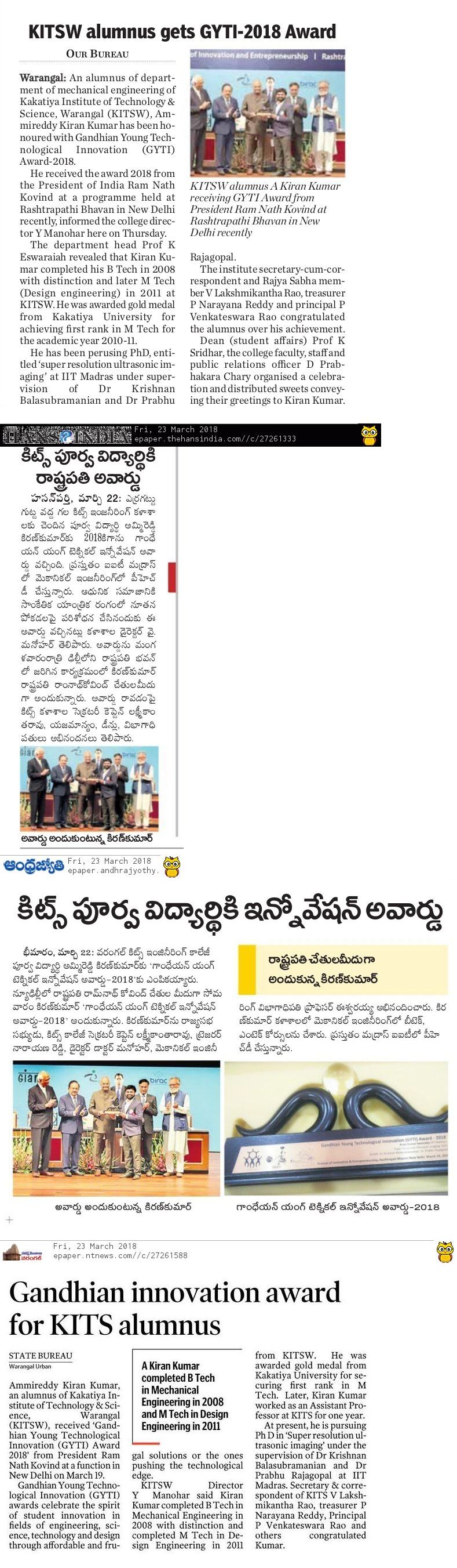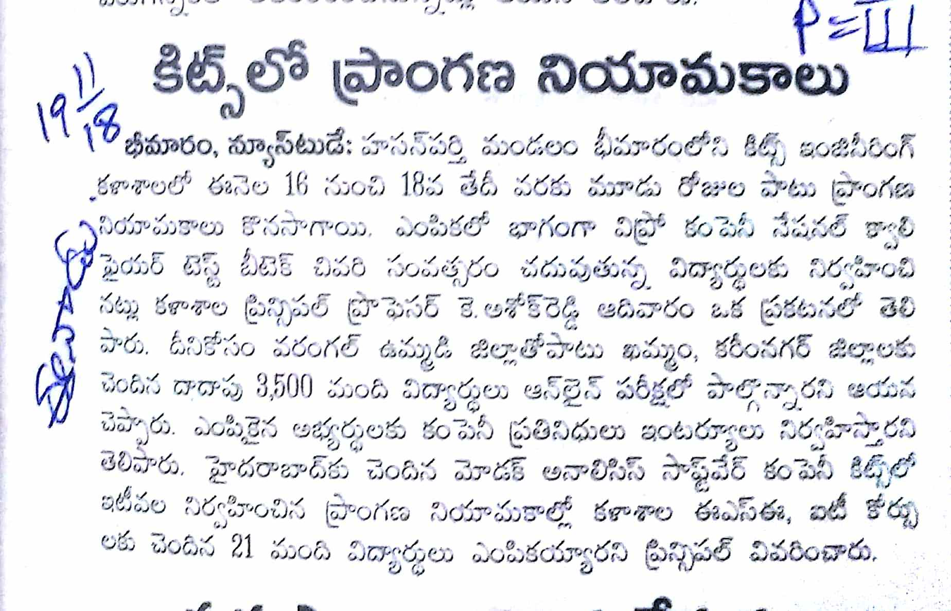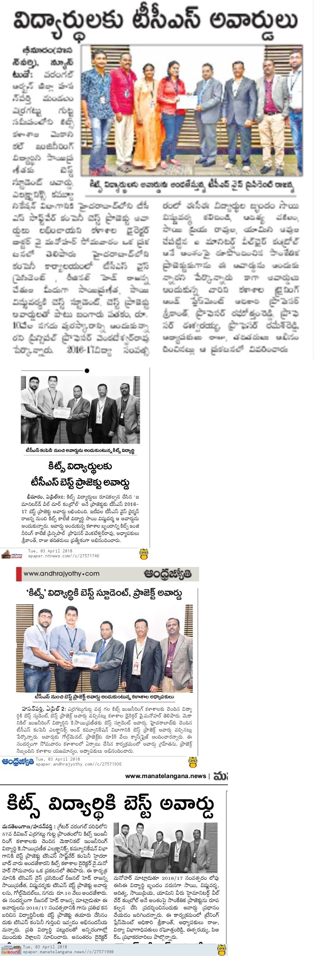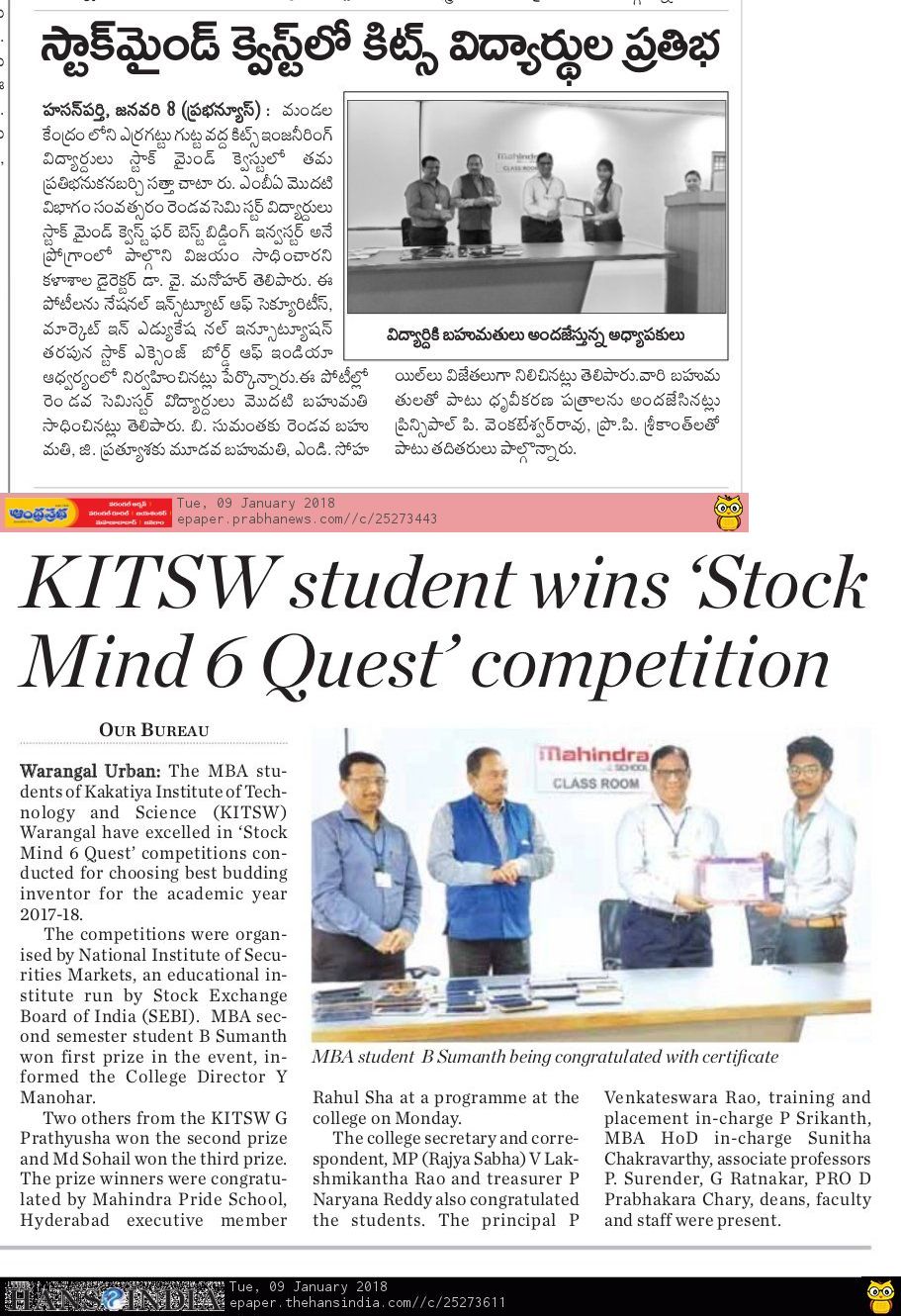 Releasing results first autonomous batch of M.Tech. and M.B.A. IV Semester @ KITSW on 6th June, 2018
