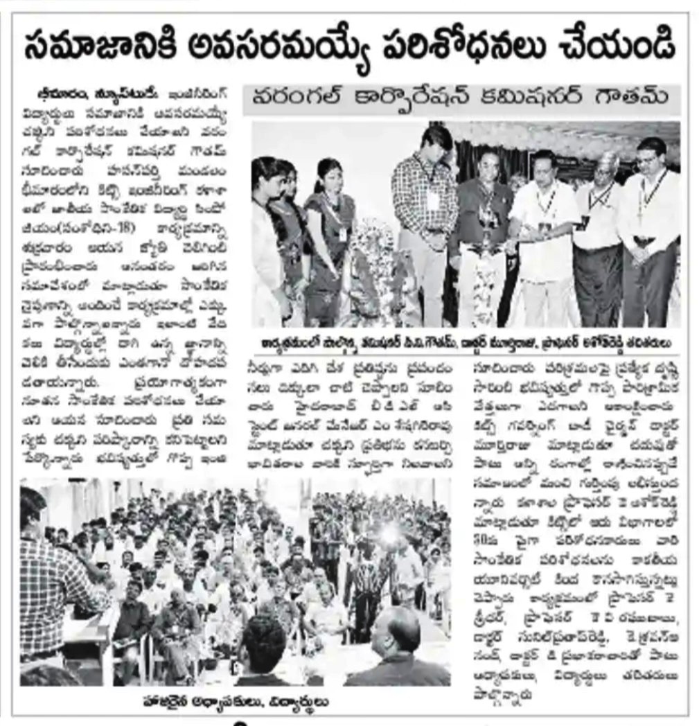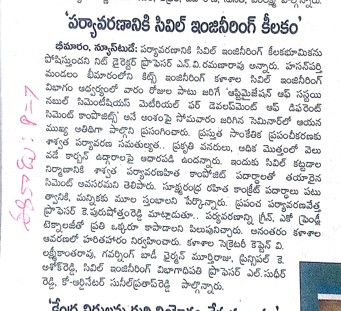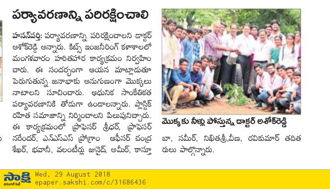 Seminar given by NITW Director, Prof. N. V.Ramana Rao on the occasion of Harithaharam@ KITSW, 28.08.2018