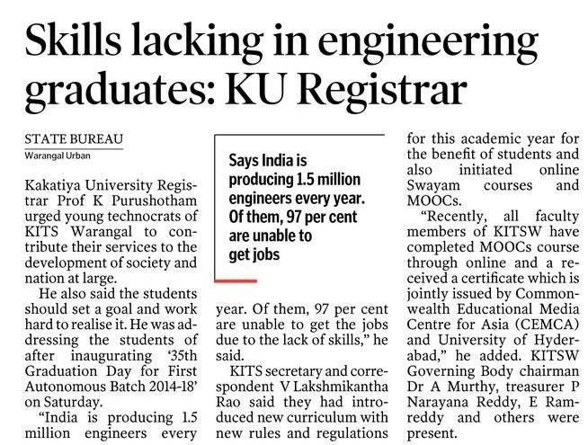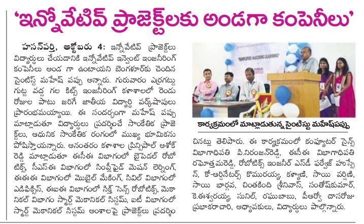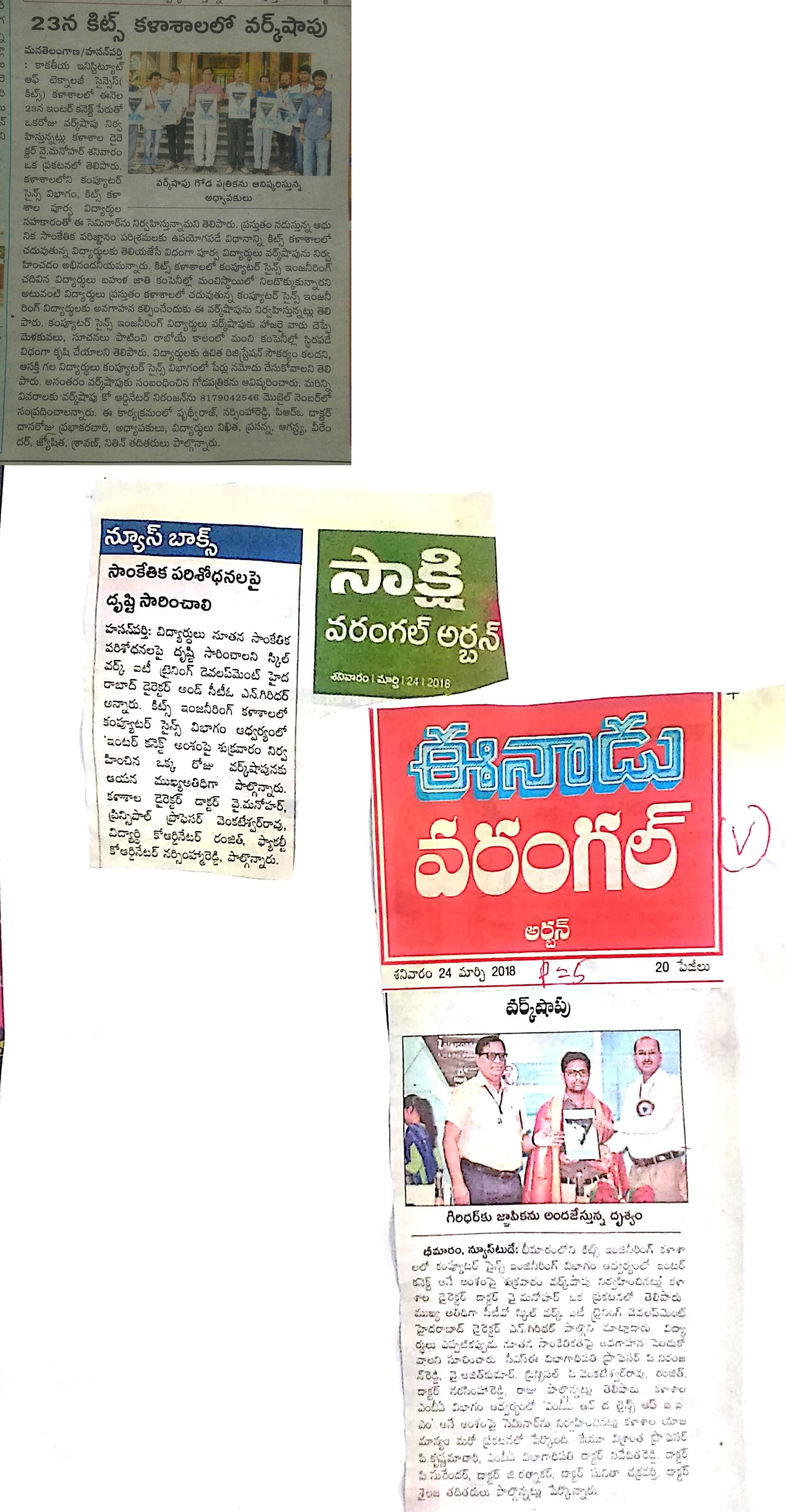 National level Workshops for Engineering students of various branches are started on 04.10.2018 @KITSW.