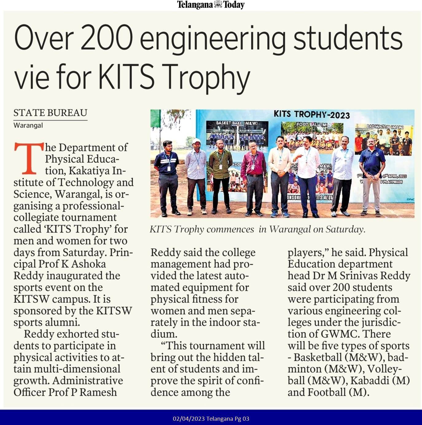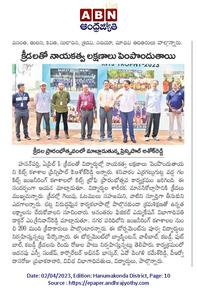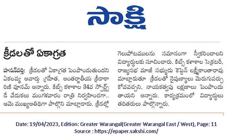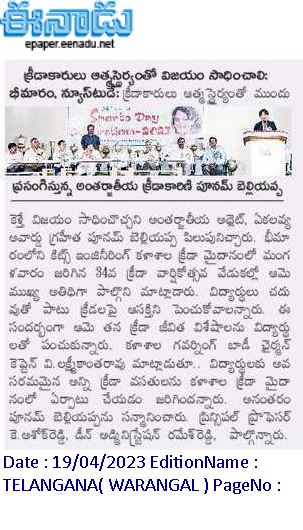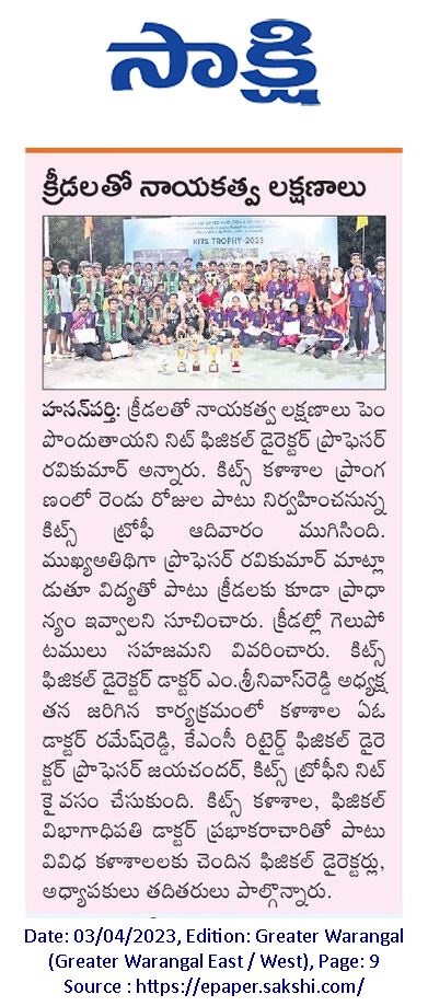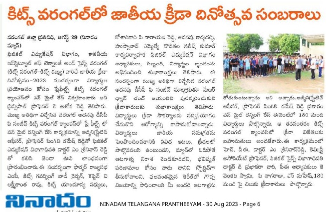 National Sports Day is celebrated on August 29, 2023 @ KITS, Warangal