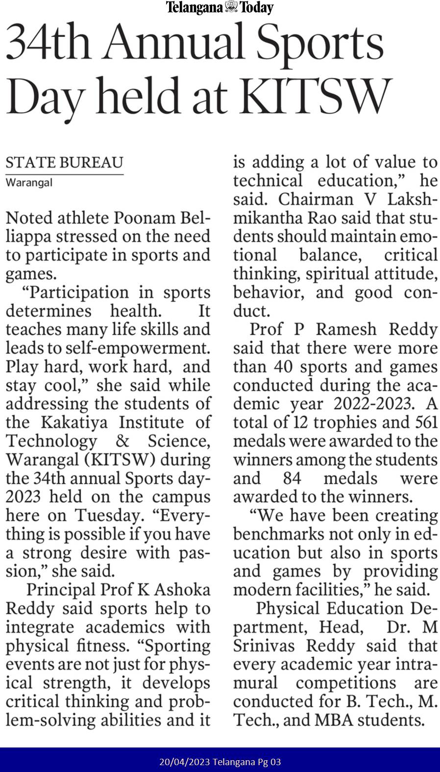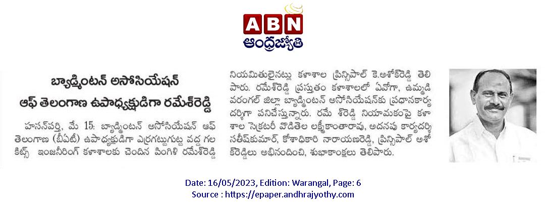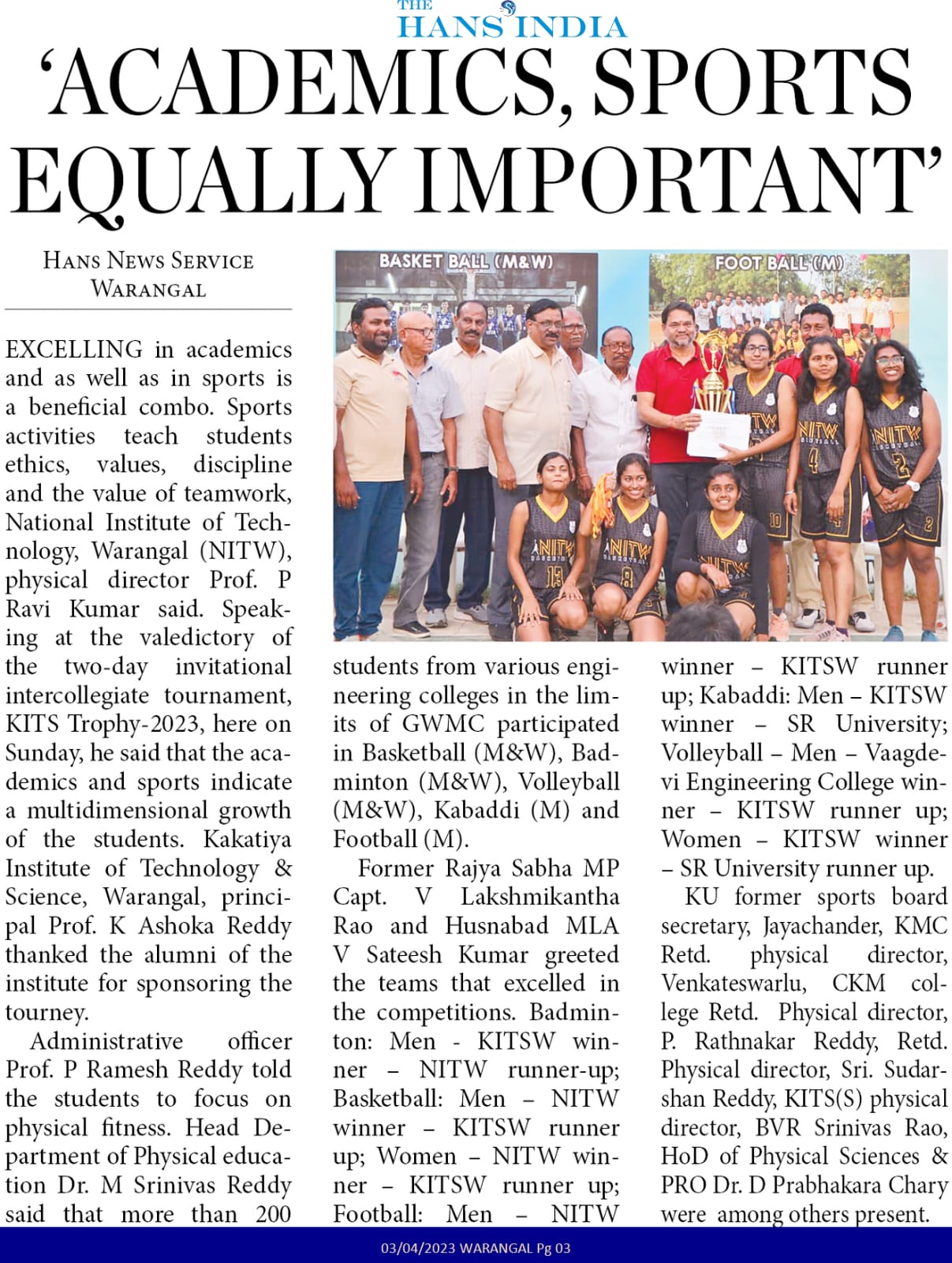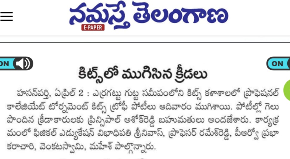 National Sports Day is celebrated on August 29, 2023 @ KITS, Warangal