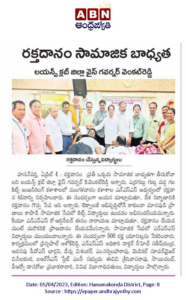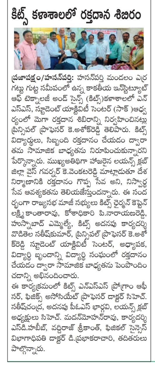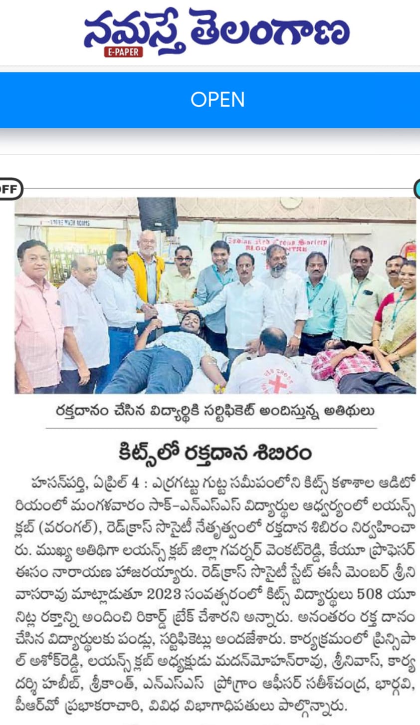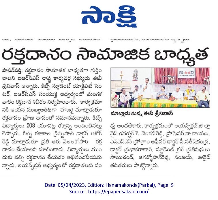 SAC and NSS Unit of KITSW, won the Gold Medal for donating highest units of blood for the needy in A.Y. 2021-22.