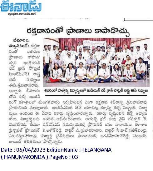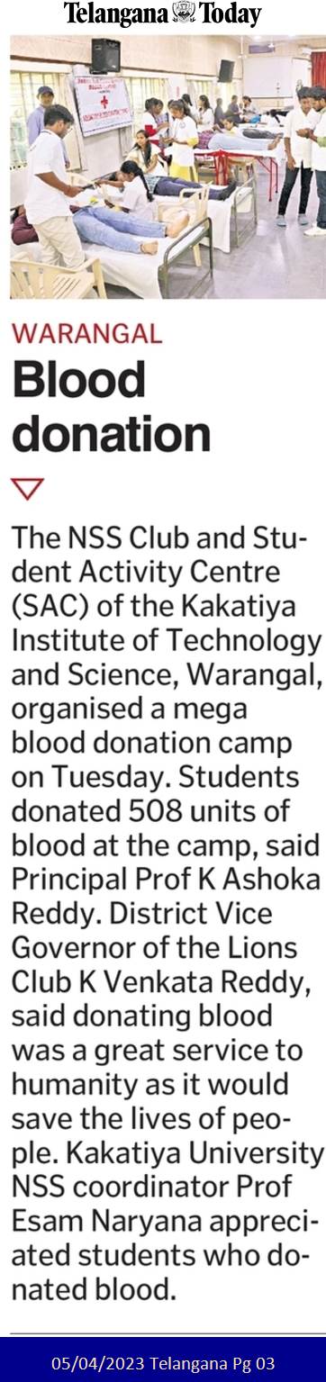 The NSS and Student Activity Centre(SAC) is organised a mega blood donation camp on 4th April, 2023. Student donated 508 units of
