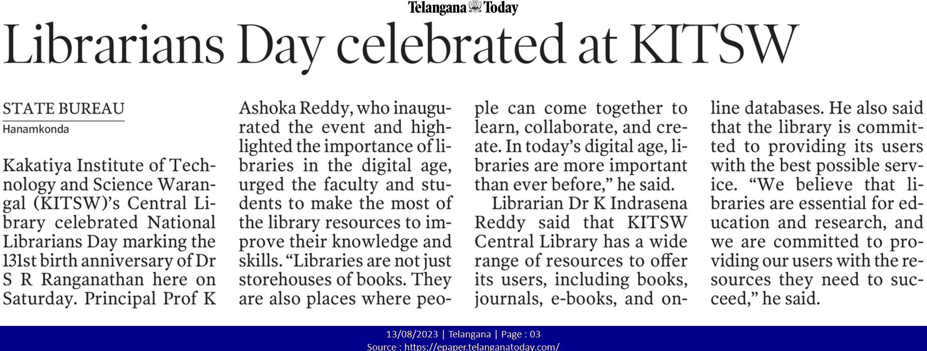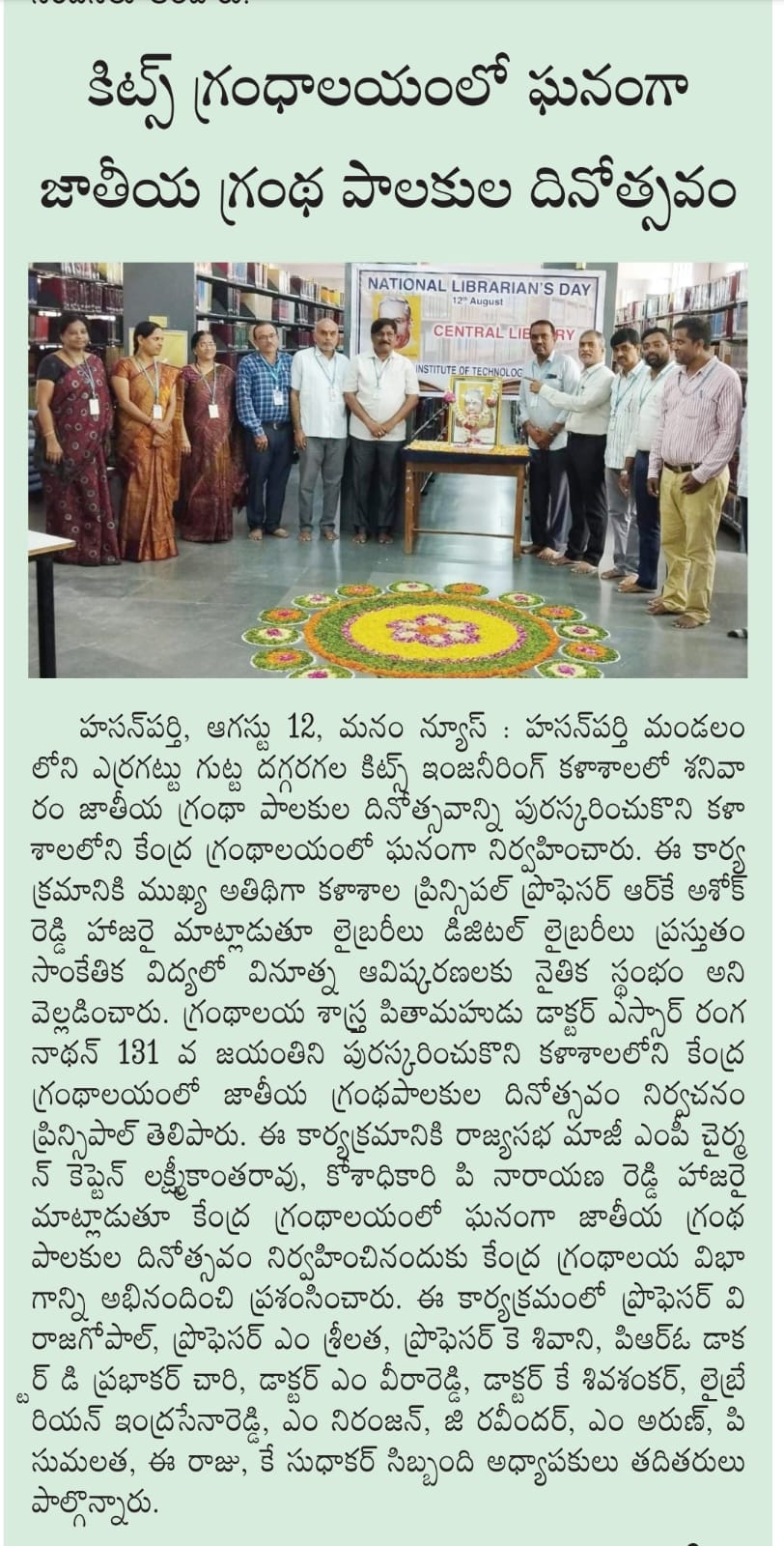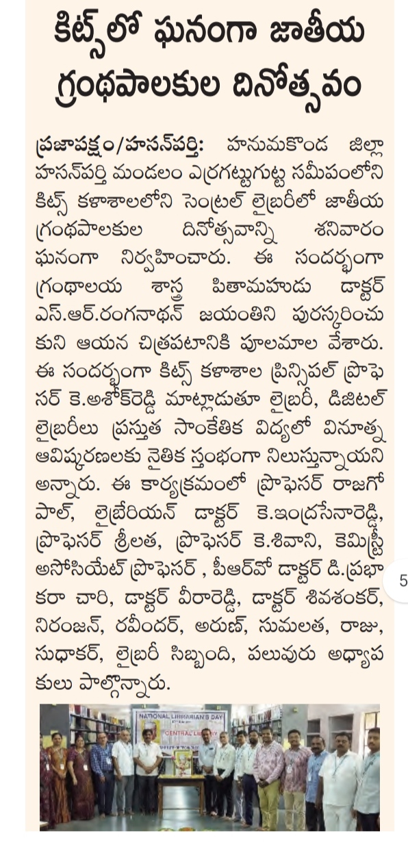 Central Library, KITS-W is celebrated National Librarians Day marking the 131st birth anniversary of Dr.S.R.Ranganathan on 12th August, 2023.