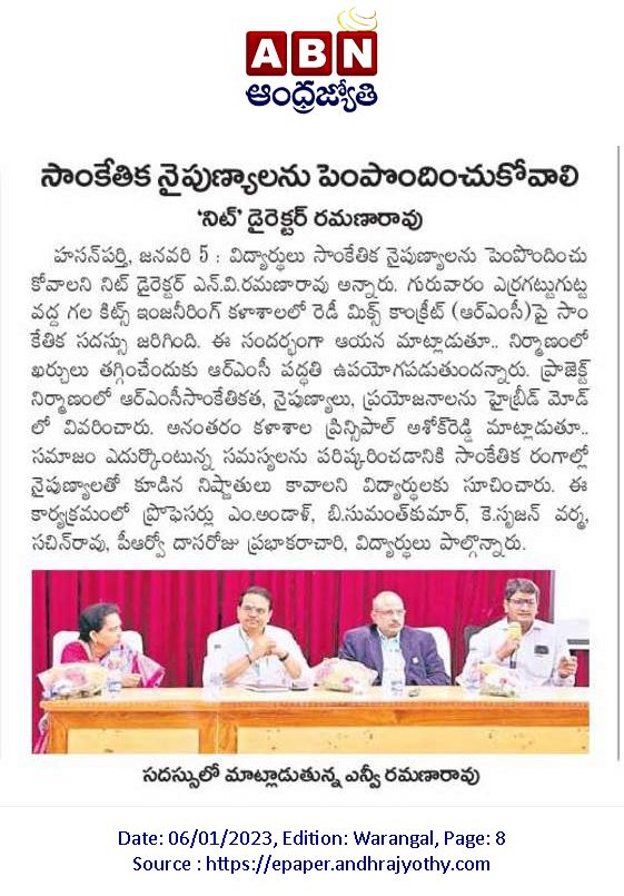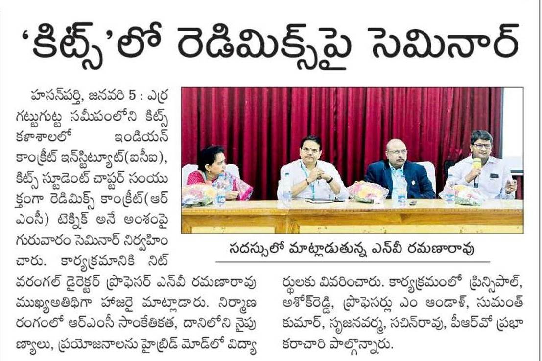 Department of Civil Engg., Indian Concrete Institute(ICI) and Student chapte, KITSW organised a seminar on "Ready Mix Concrete Techniques" on 5th January, 2023 @ KITSW.