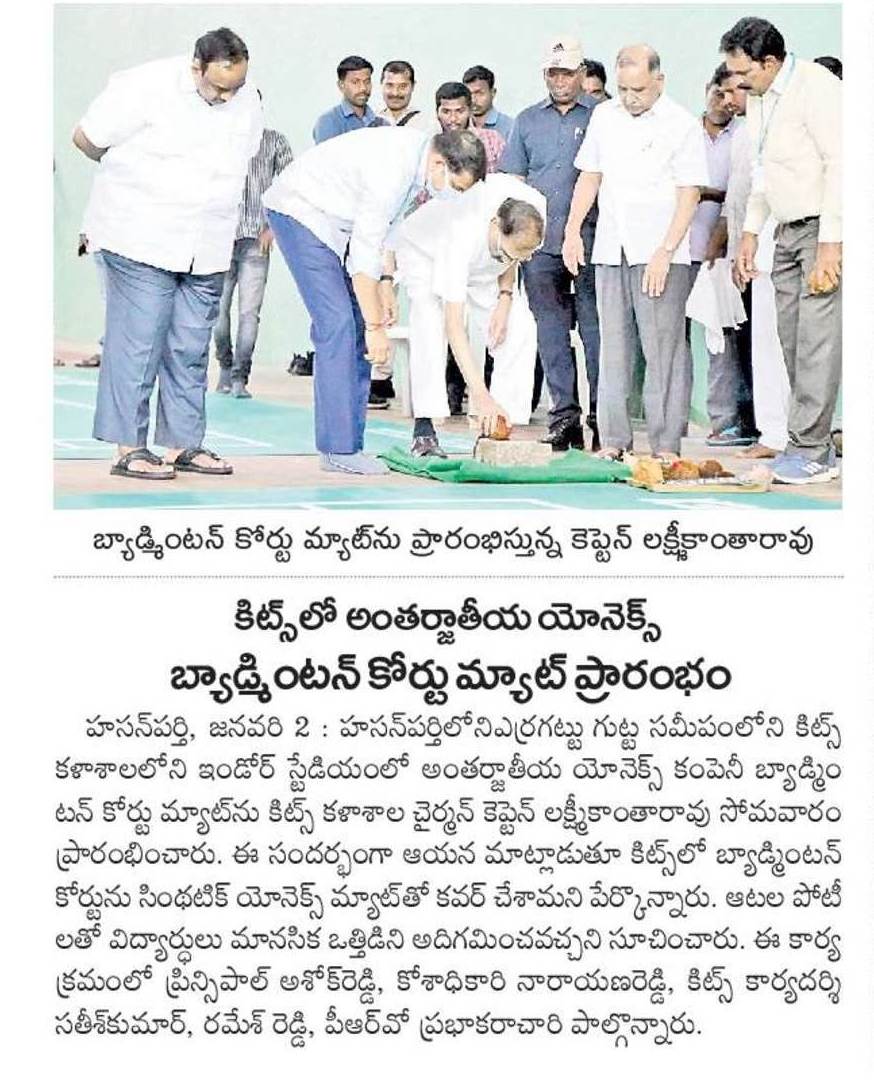 Former MP and KITS-W Chairman Capt. Lakshmikantha Rao launched the Yonex Badminton Court's mats at the Indoor Stadium on 2nd January, 2023 @ KITSW