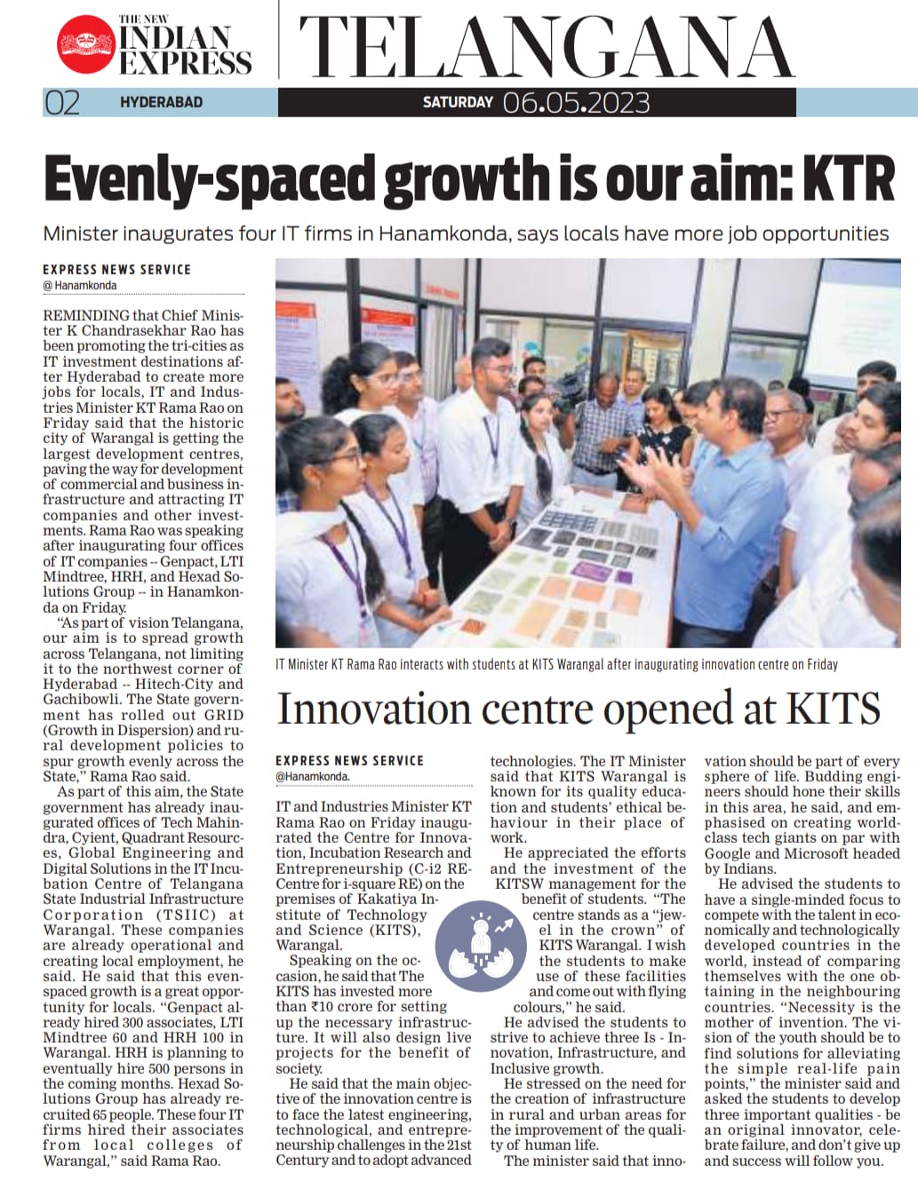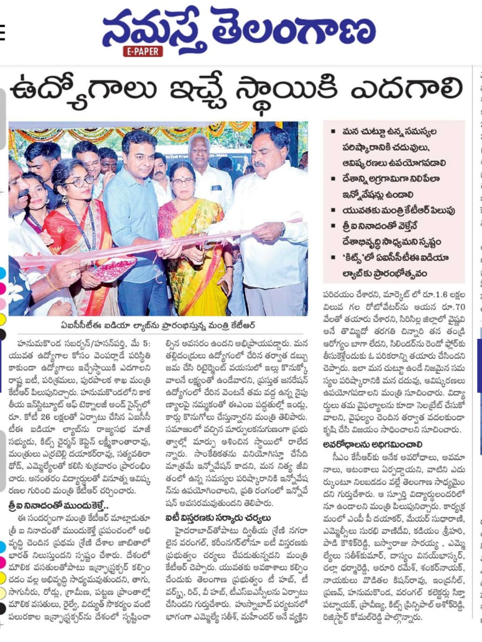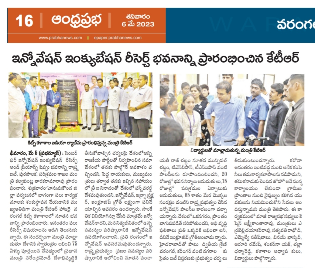 Inaugurating of the Centre for i2RE by Shri.K.T. Rama Rao, Hon'ble Minister for IT, Municipal Administration & Urban Development on 06.05.2023