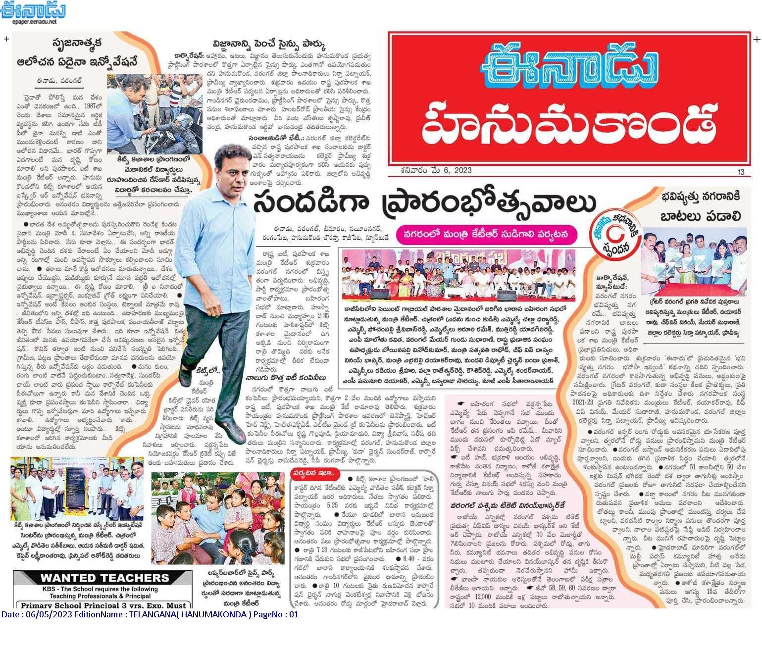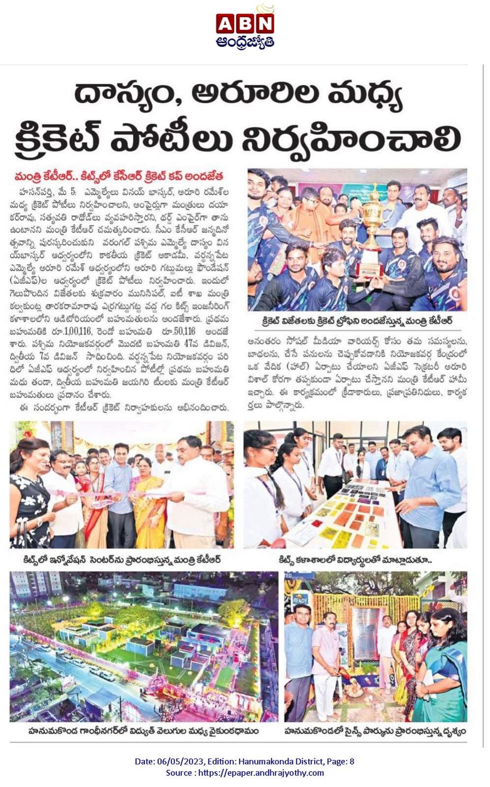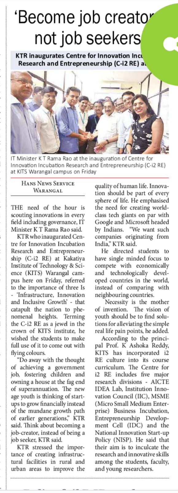 Inaugurating of the Centre for i2RE by Shri.K.T. Rama Rao, Hon'ble Minister for IT, Municipal Administration & Urban Development on 06.05.2023