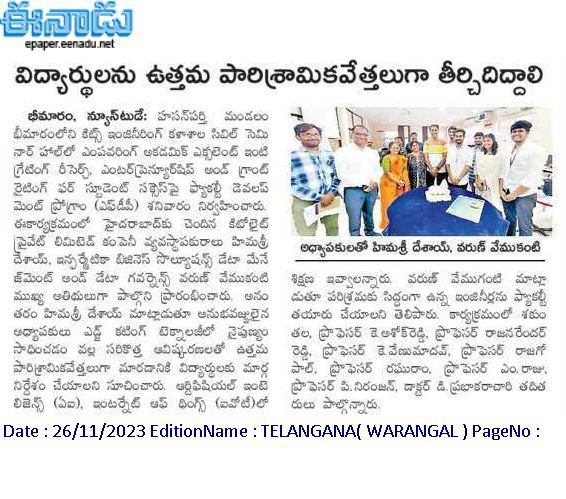 B.Tech. I year student induction programme concludes @ KITS, Warangal