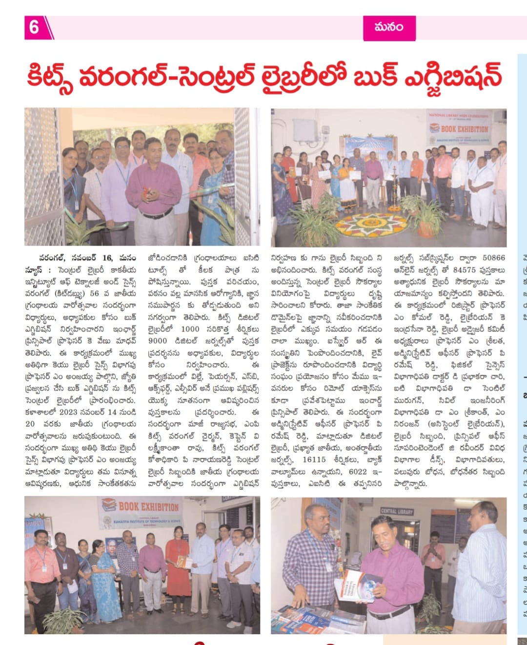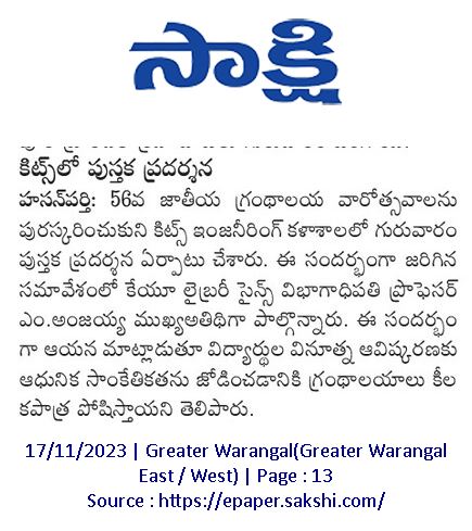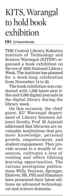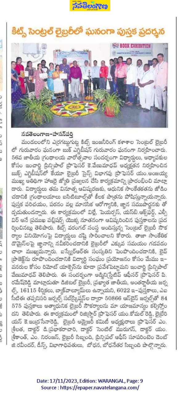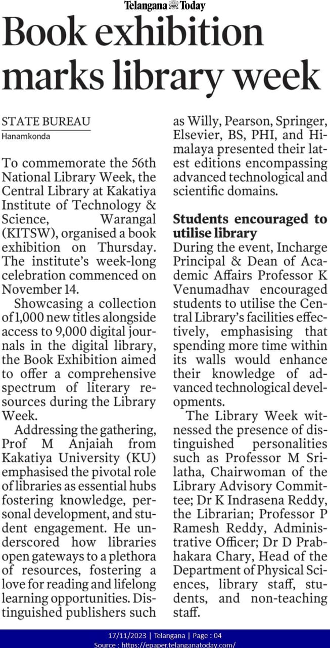 Central Library, KITSW organised a book exhibition on the eve of National Library Week celabrations from 14th to 20th November, 2023 @ KITS, Warangal