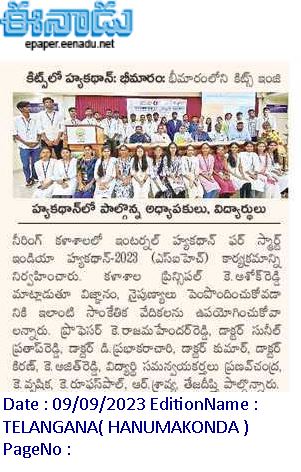 I2RE and Dept. of CSE(Networks) jointly organised "Internal Hackathon for Smart India Hackathon-2023" on 8th September, 2023 @ KITS, Warangal