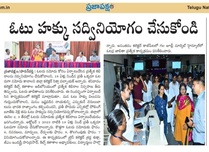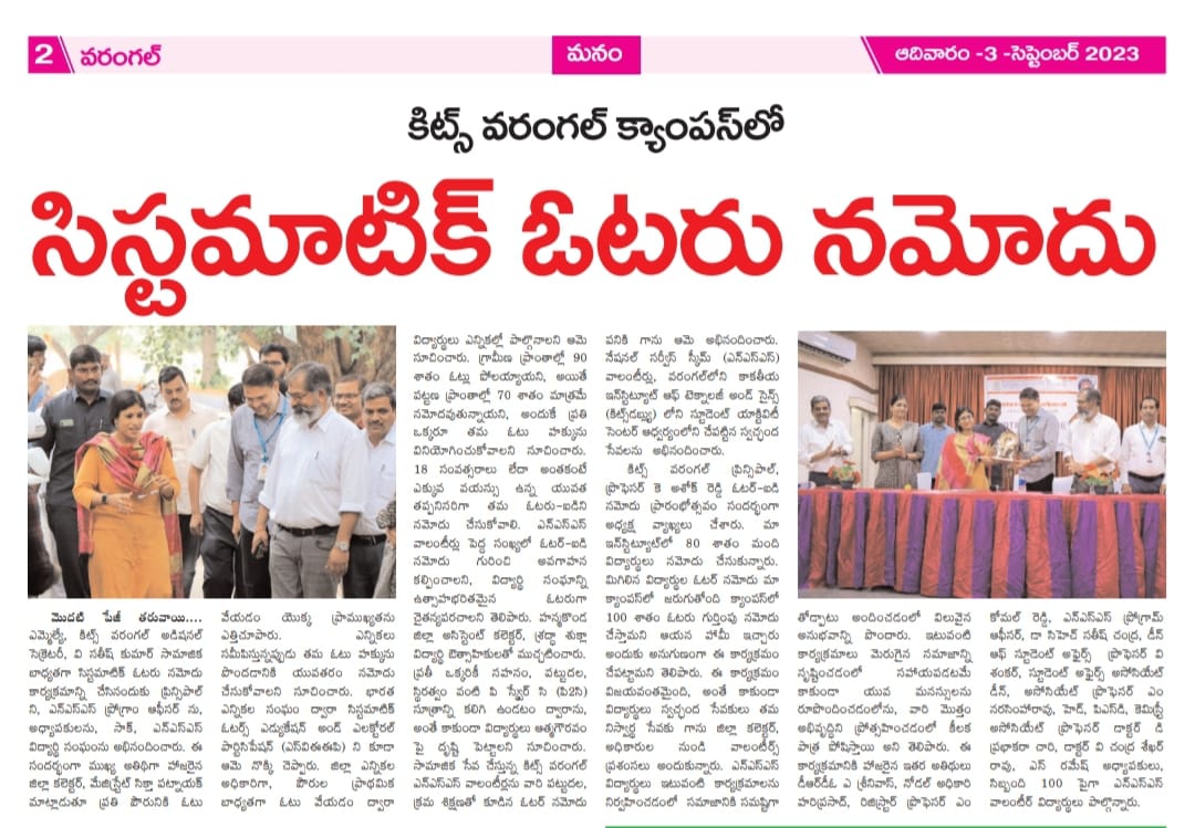 NSS Club, KITSW organized Voter ID enrollment drive on 2nd September, 2023 @ KITS, Warangal