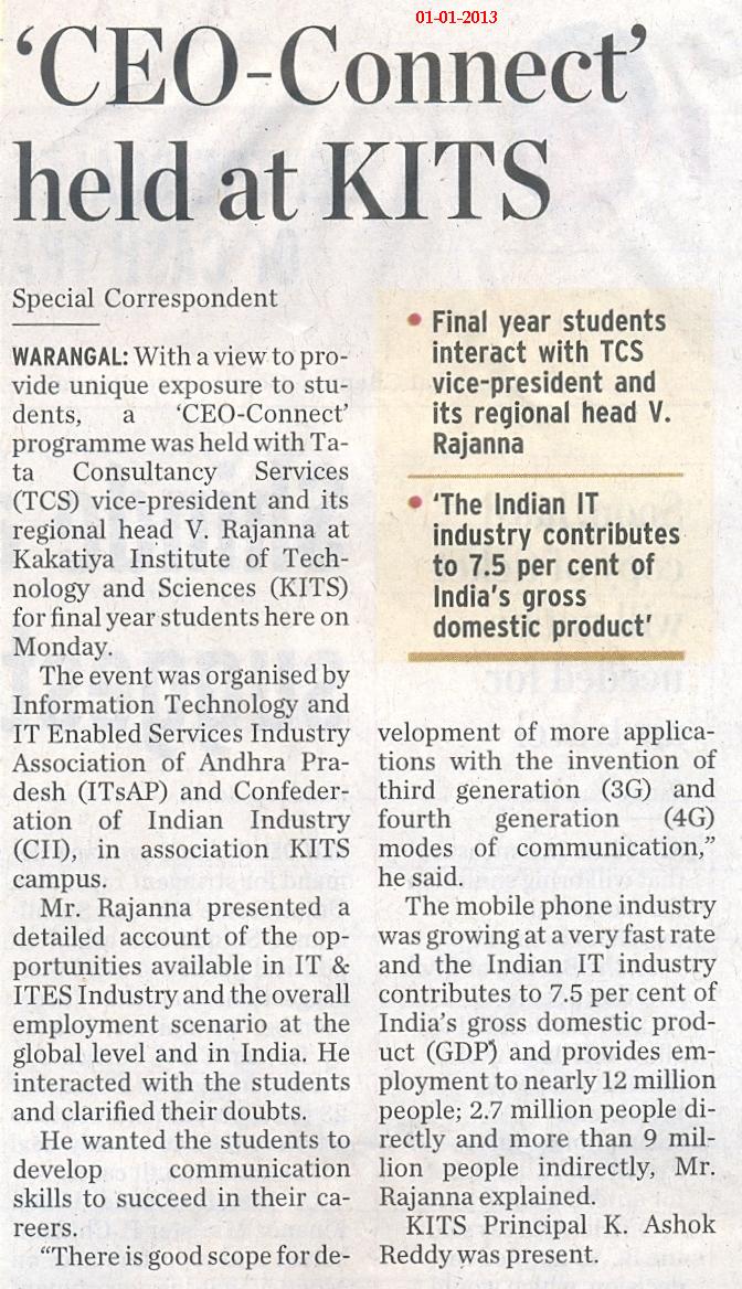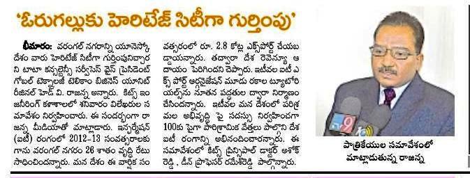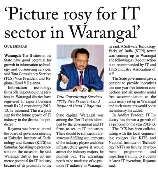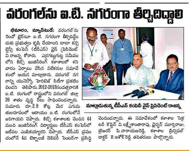Press Meet by Sri. V. Rajanna garu, Vice President & Regional Head, TCS - Hyderabad @KITSW
