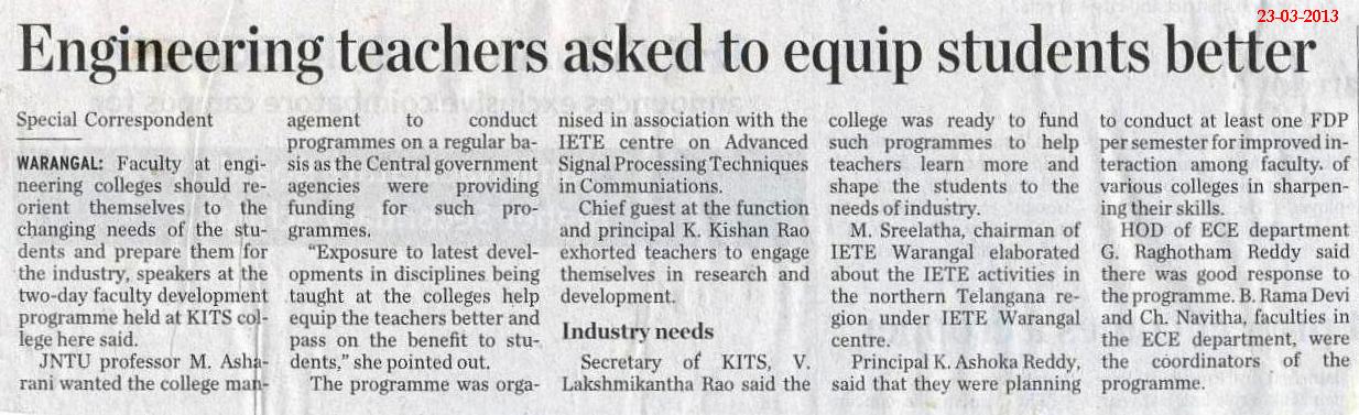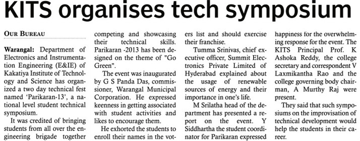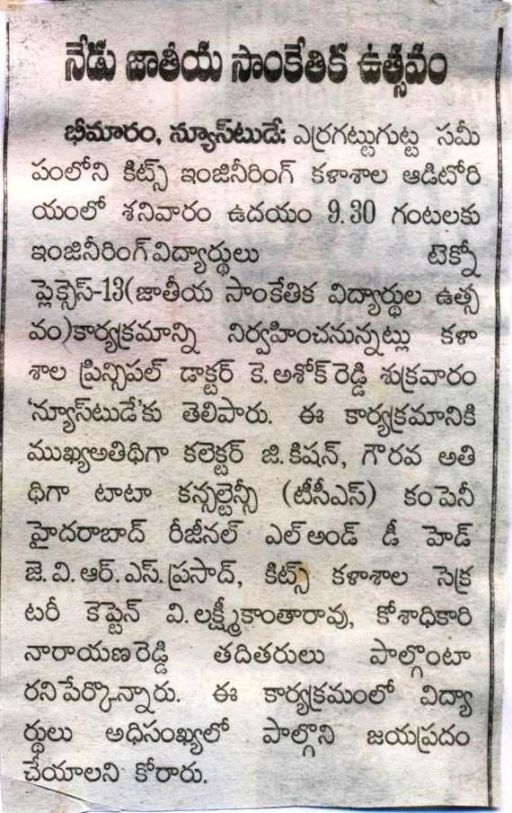 Sristi-13:A Students' Technical Symposium began @KITSW