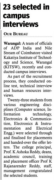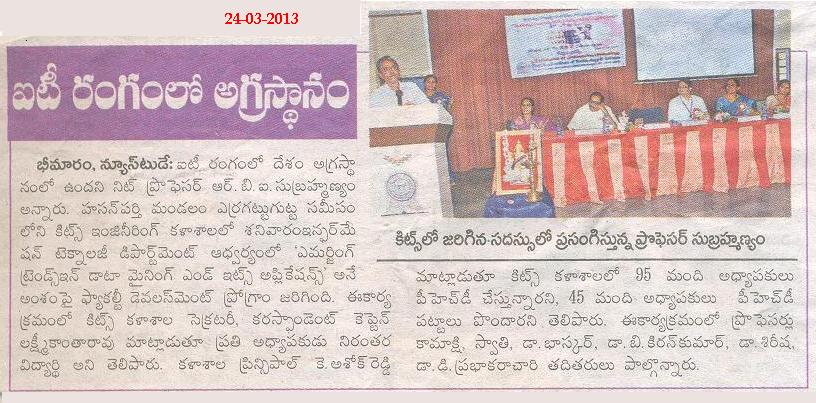 KITSW Faculty Sri P.Niranjan, Professor& Head, Dept. of CSE awarded Ph.D.