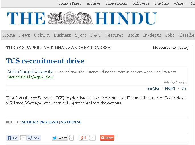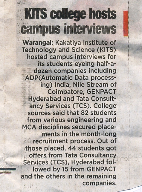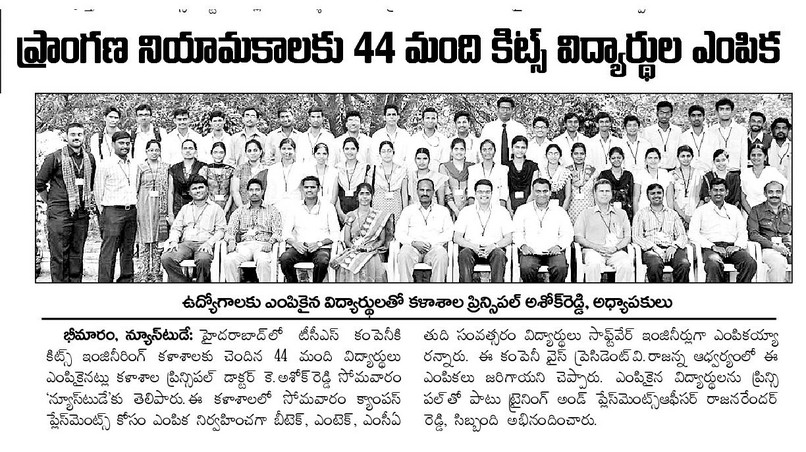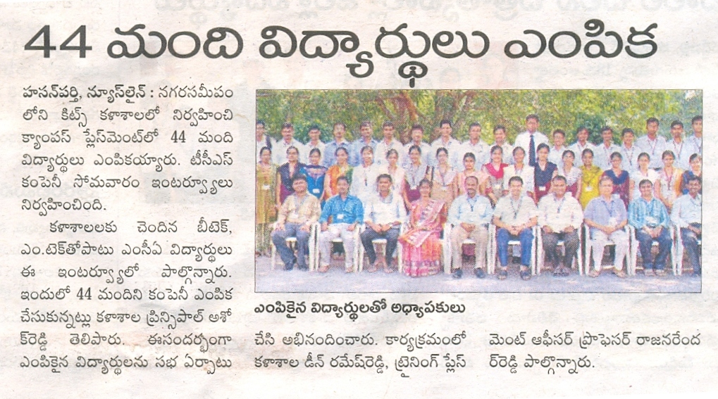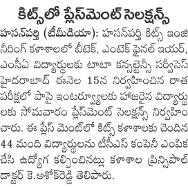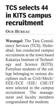 44 Students were selected in TCS Campus Recruitment Drive on 15.11.2013