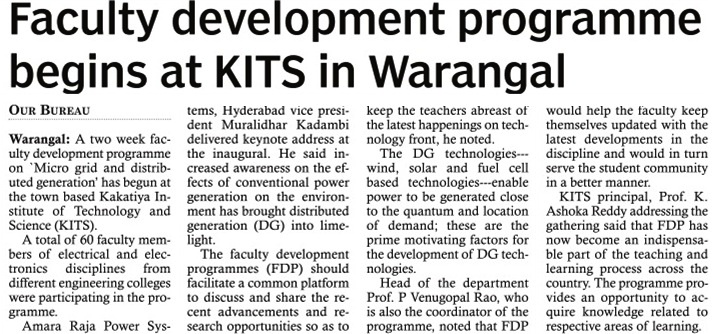 FDP on "Micro Grid & Distributed Generation" by Dept.of EEE on 29.10.2013