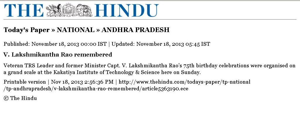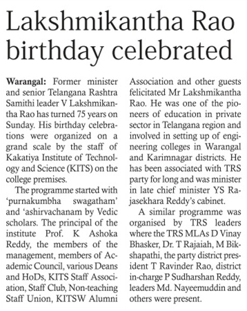 75th Birthday Celebrations of Capt. V.Lakshmikantha Rao garu, Secretary & Correspondent, KITSW.
