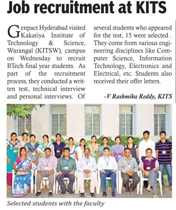 15 Students were selected in Genpact Campus Recruitment Drive on 20.11.2013