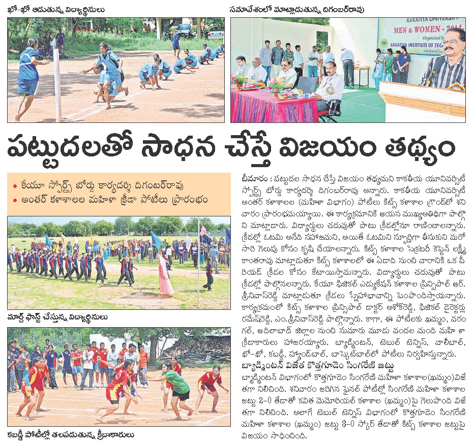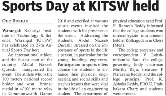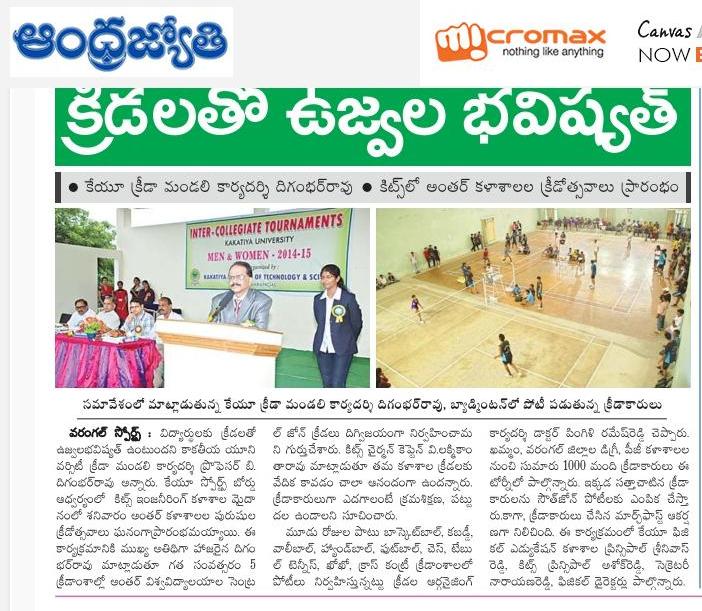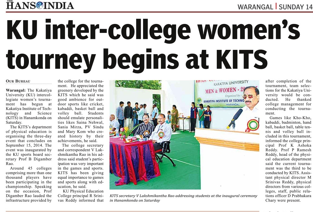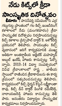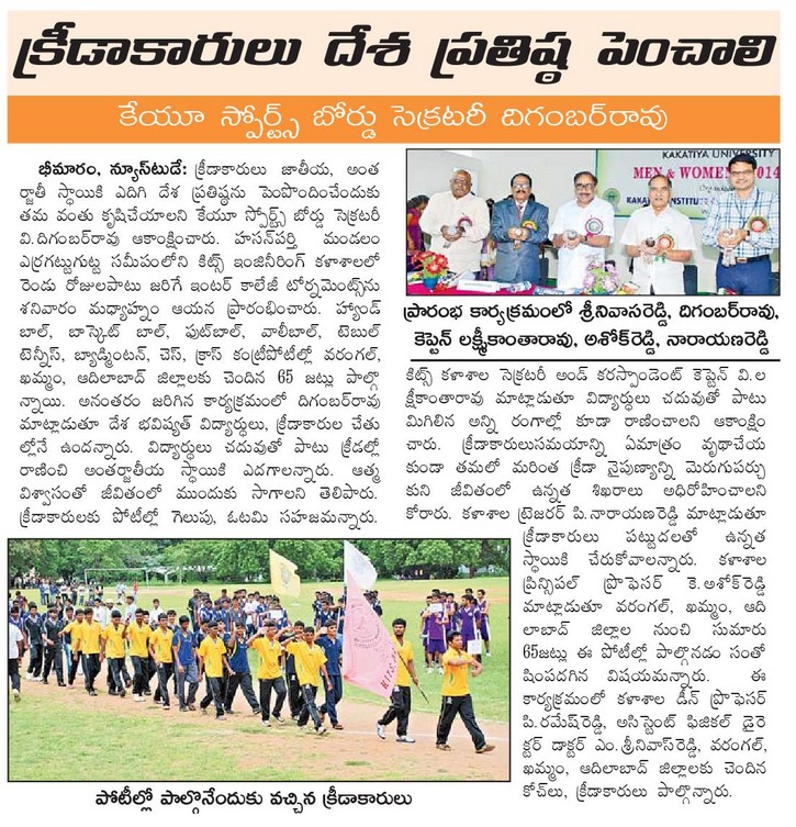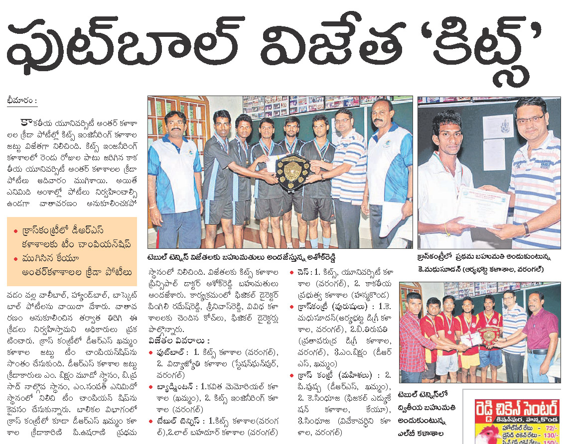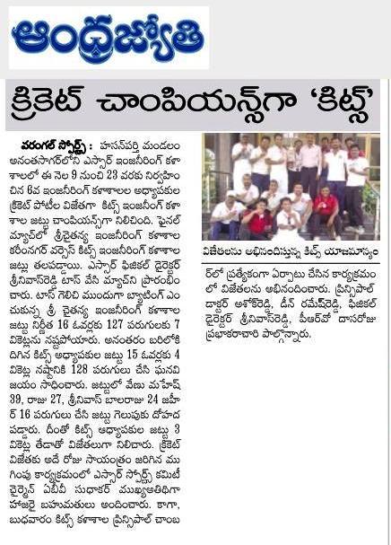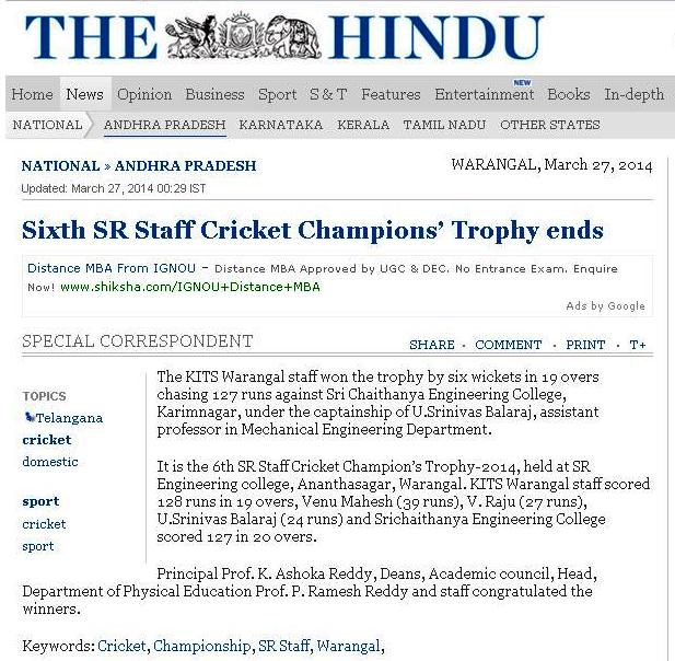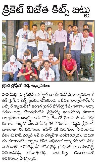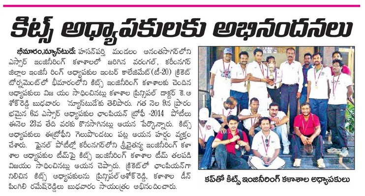 KITS, Warangal Staff bags "6th SR Staff Cricket Champion's Trophy-2014".