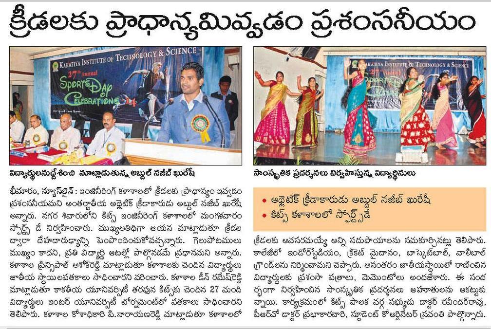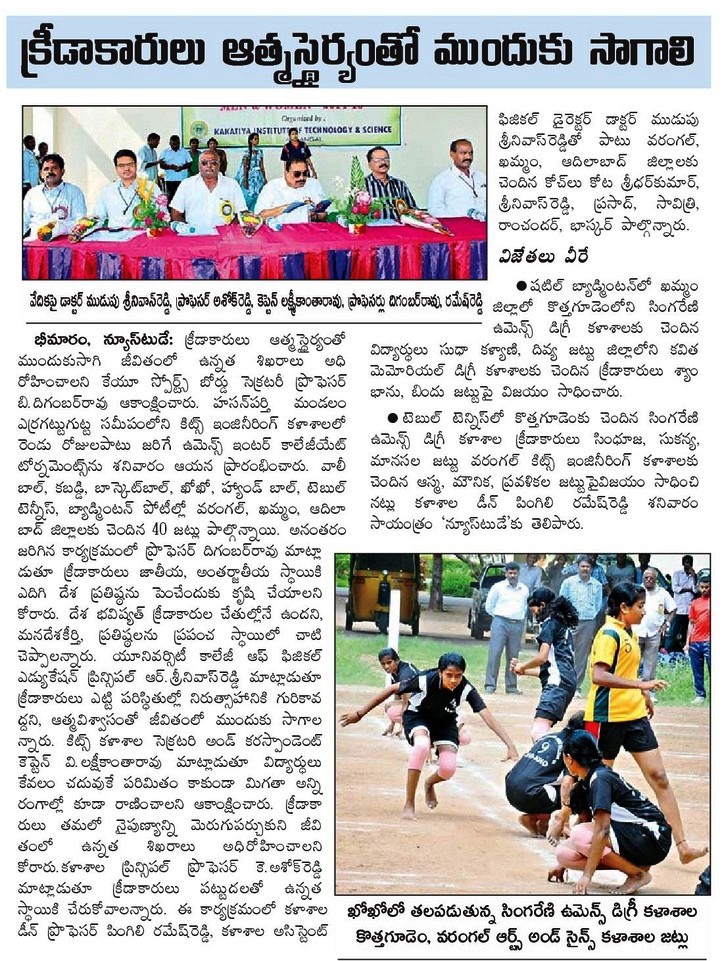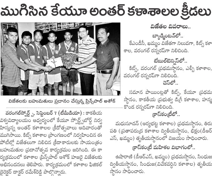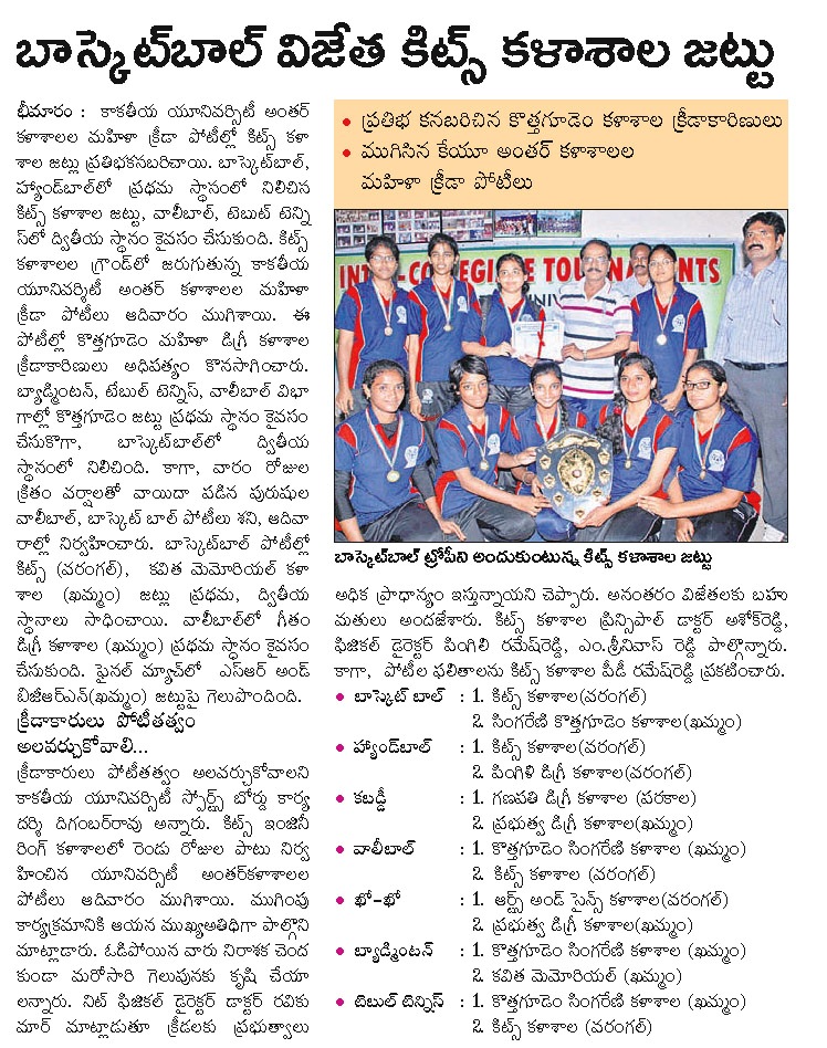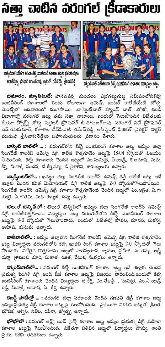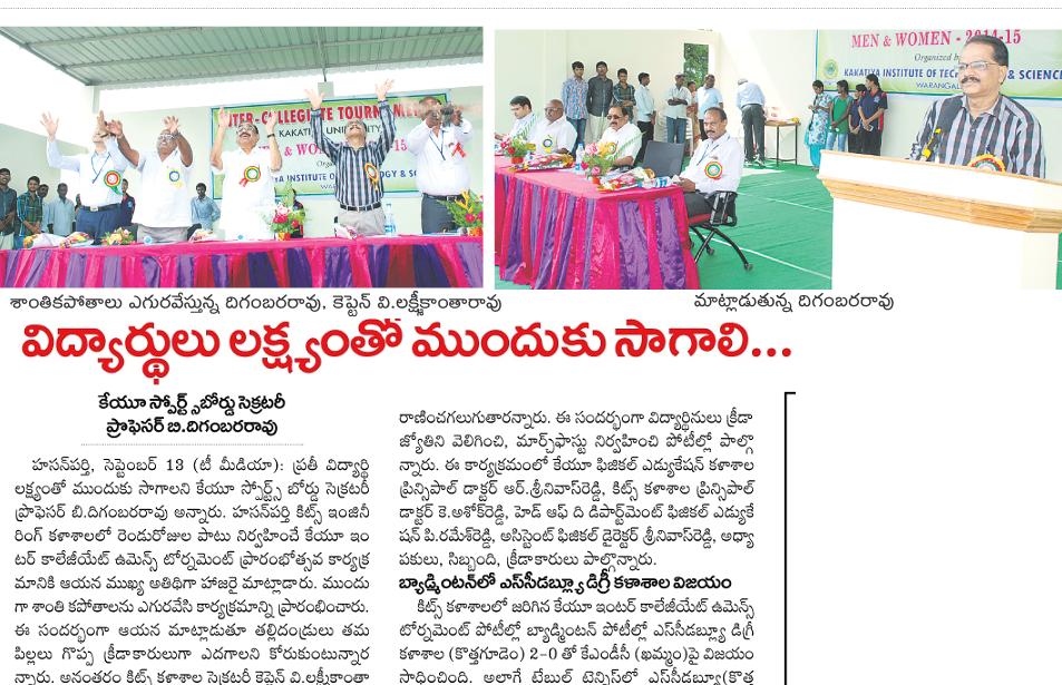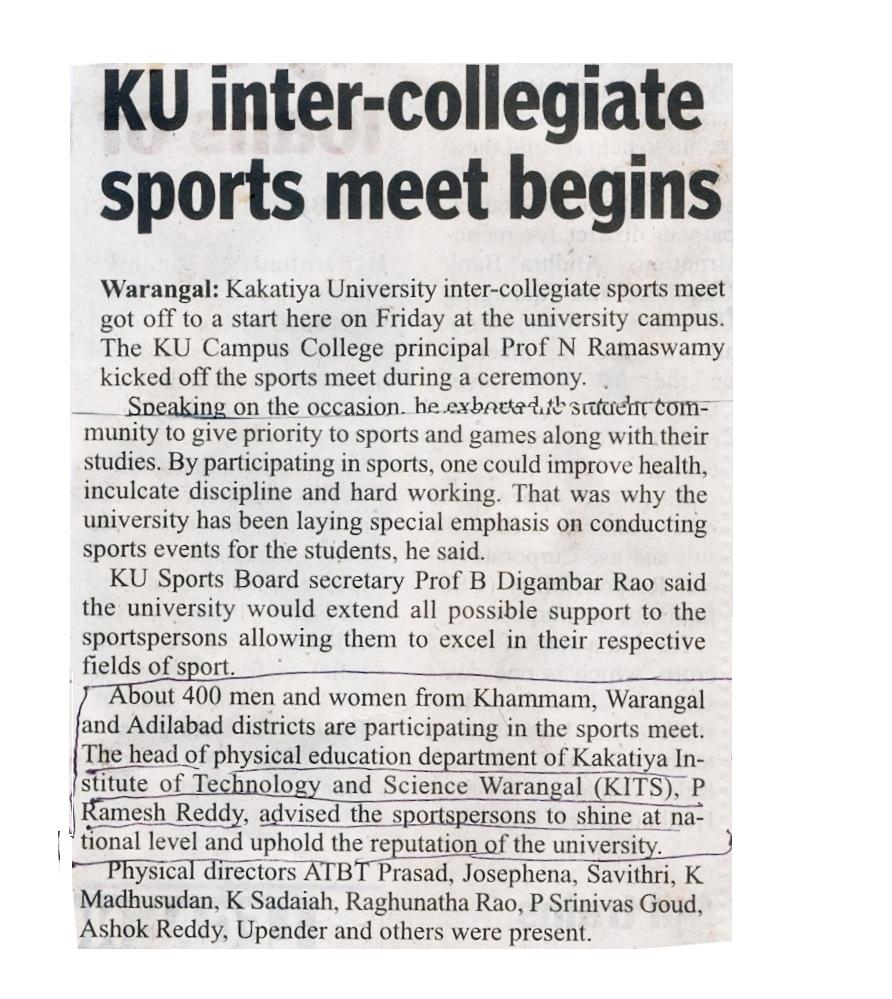 KITS, Warangal Staff bags "6th SR Staff Cricket Champion's Trophy-2014".