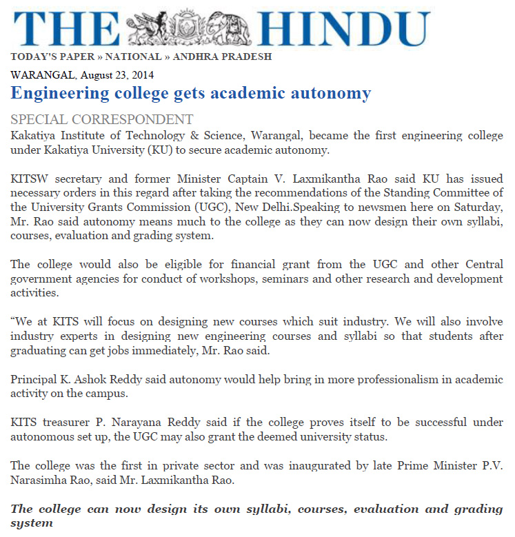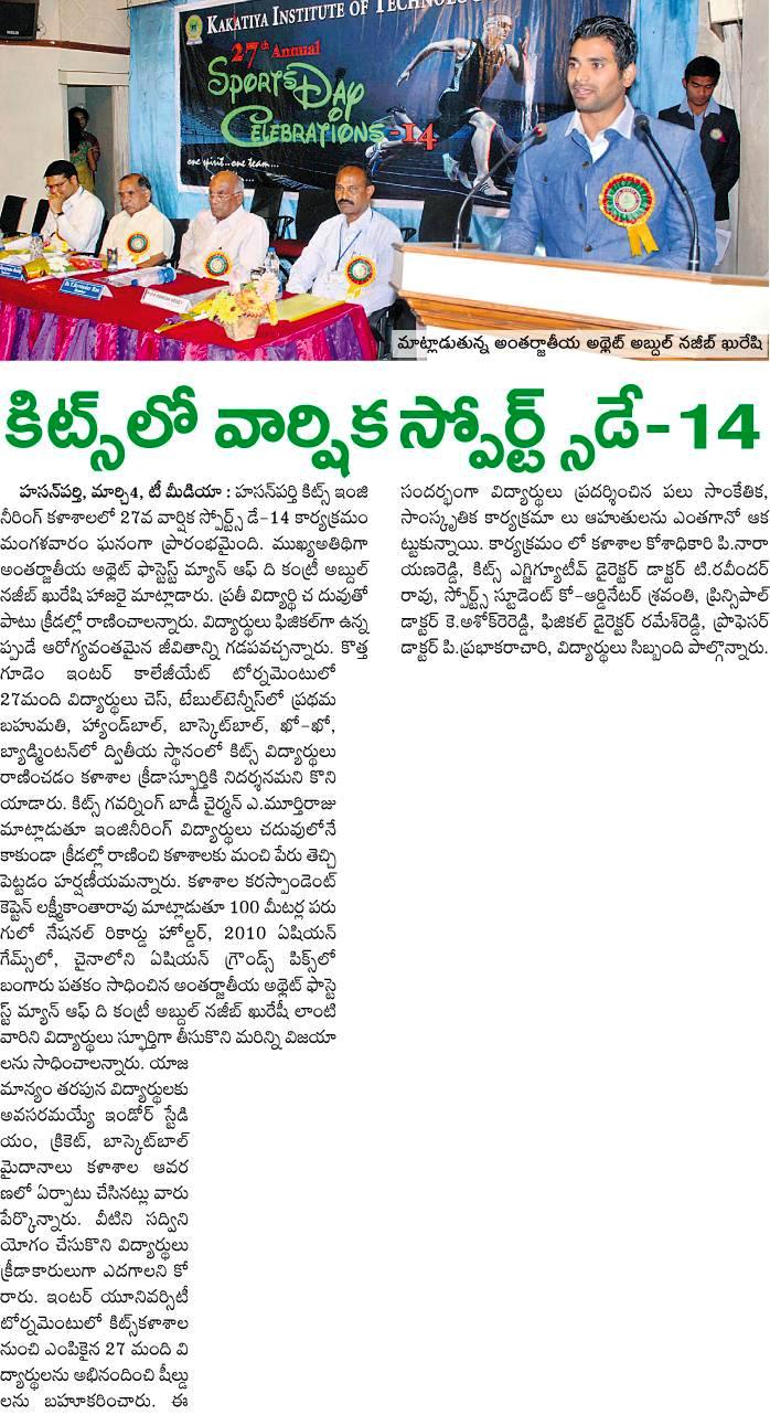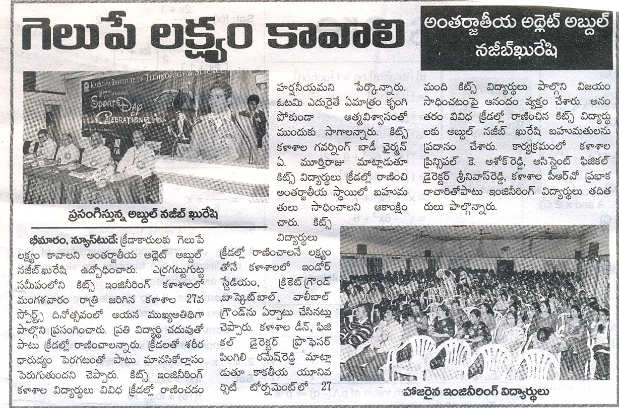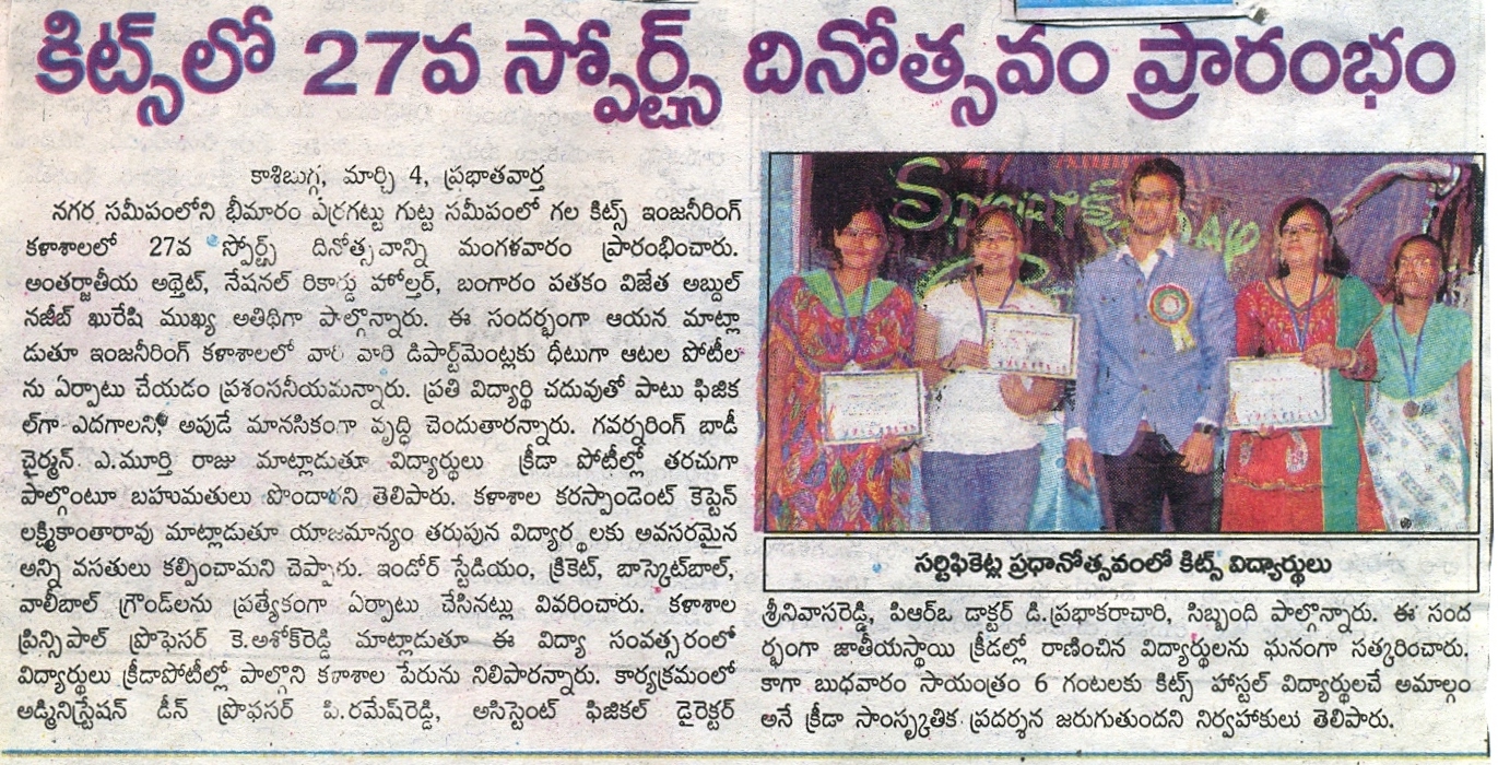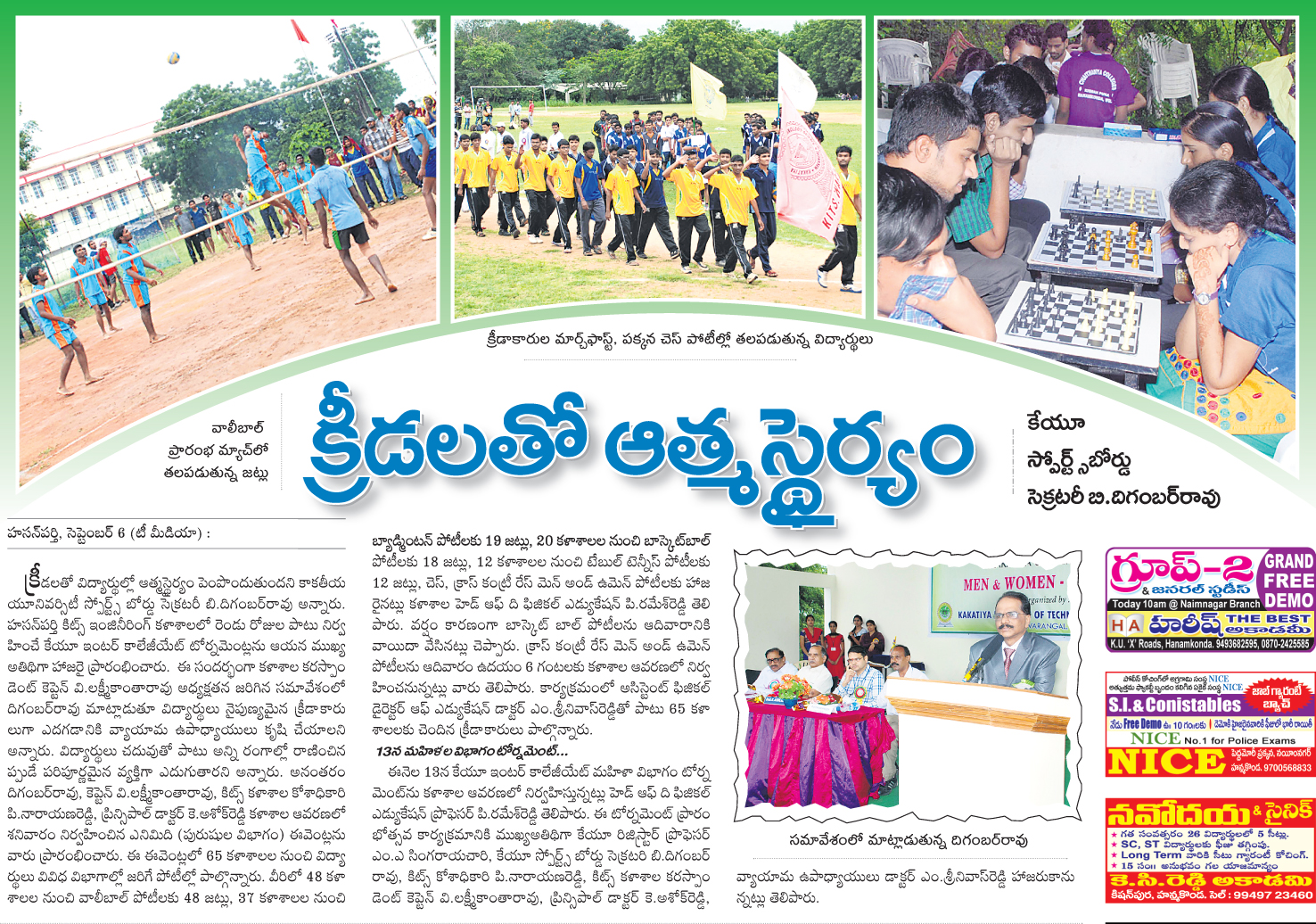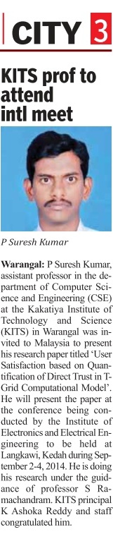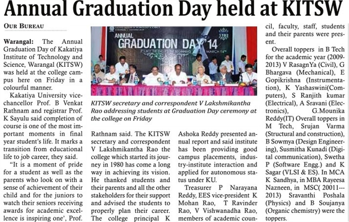 KITS, Warangal Staff bags "6th SR Staff Cricket Champion's Trophy-2014".
