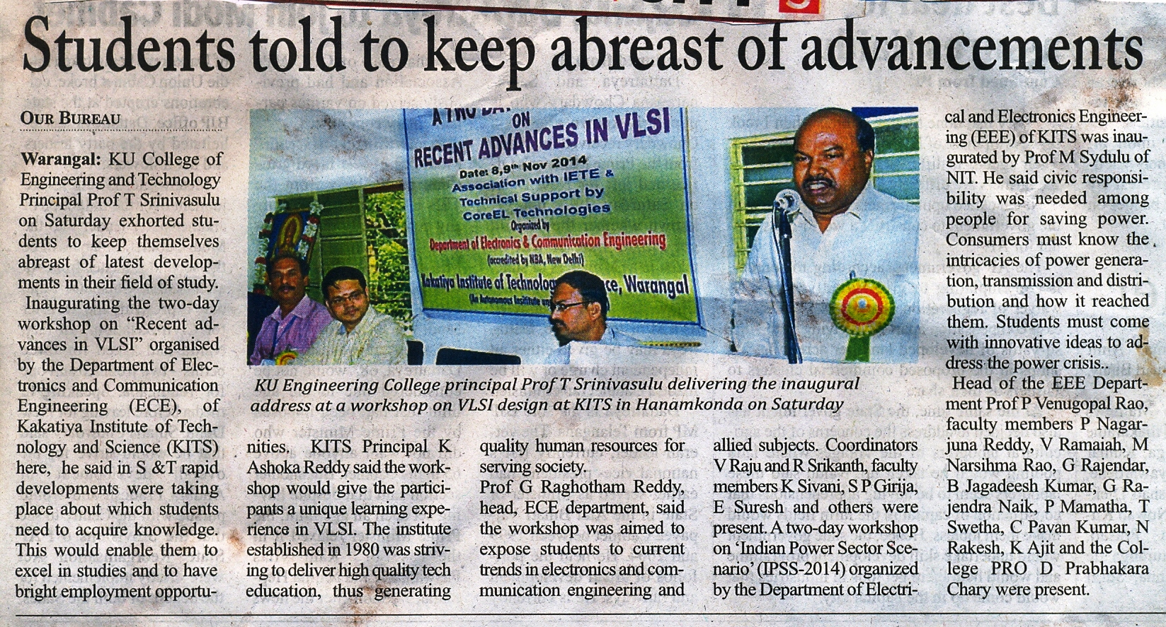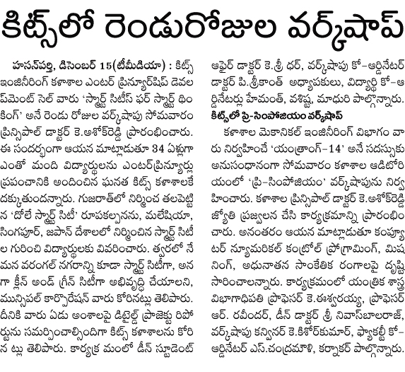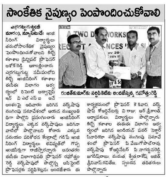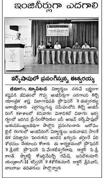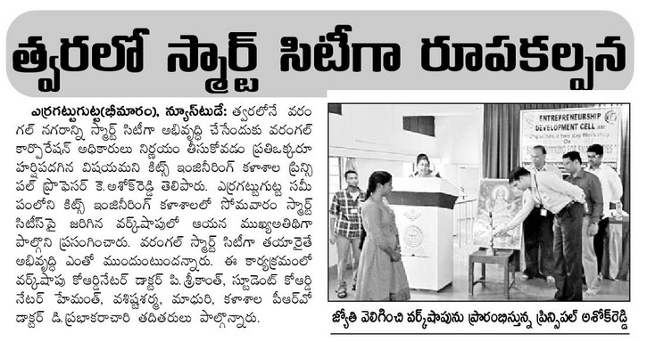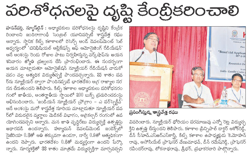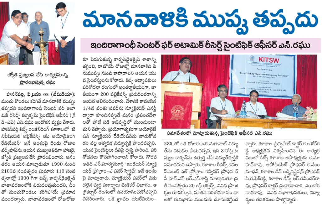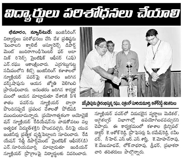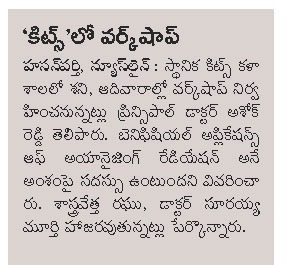 A Two-day workshop on "Beneficial Applications of Ionizing Readiations" is organized by R&D Cell, KITSW in association with IGCAR-Kalpakkam.