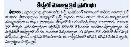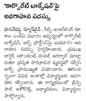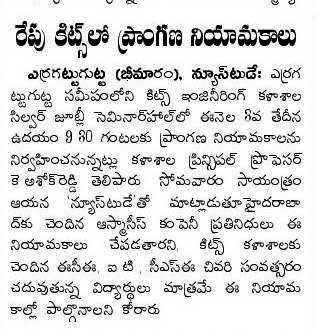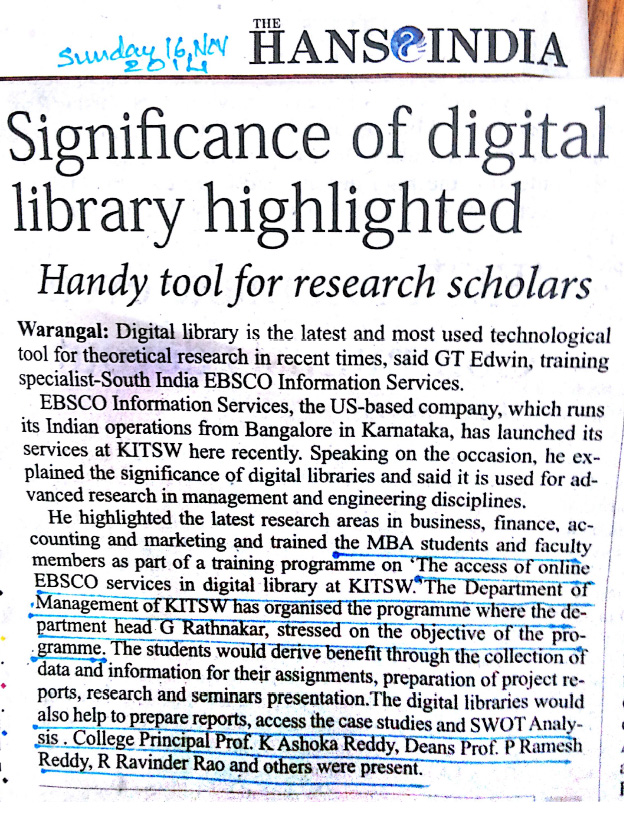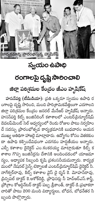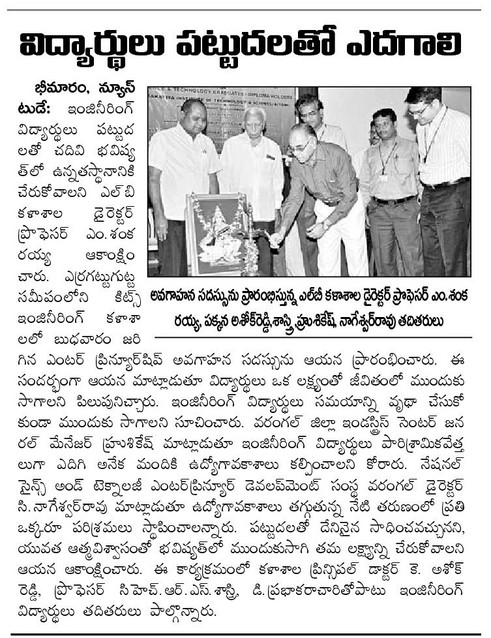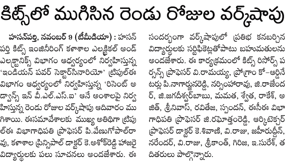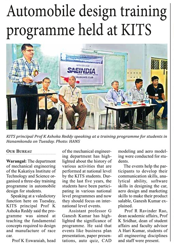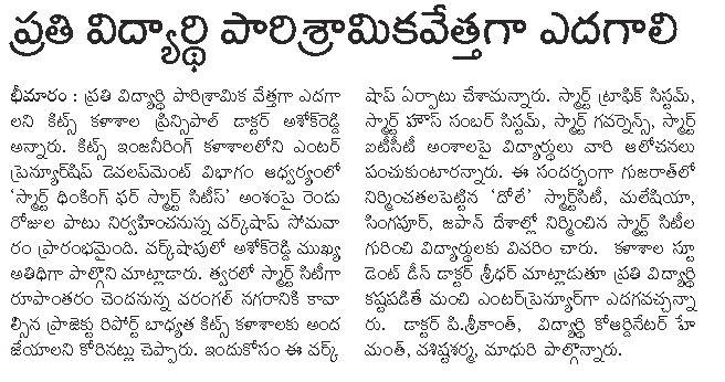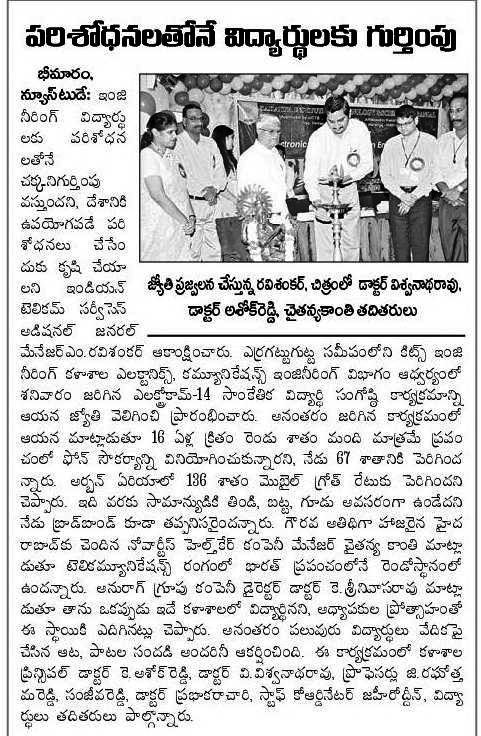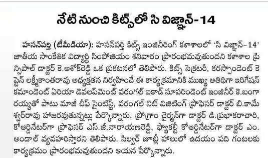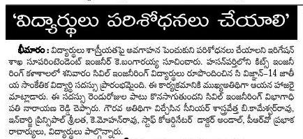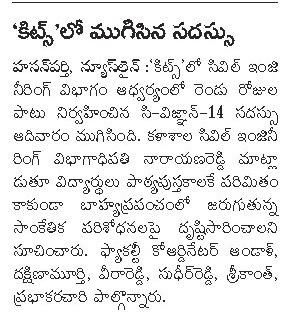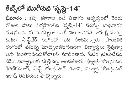 A Two-day workshop on "Beneficial Applications of Ionizing Readiations" is organized by R&D Cell, KITSW in association with IGCAR-Kalpakkam.