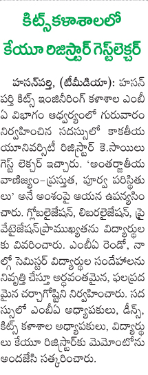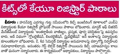 Guest Lecture by Registrar, Kakatiya University, Warangal