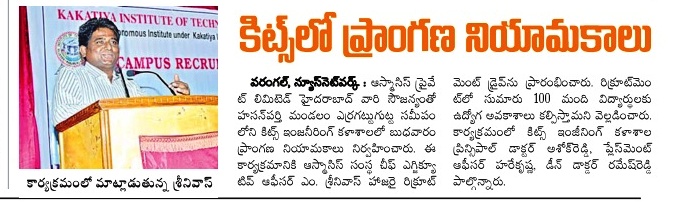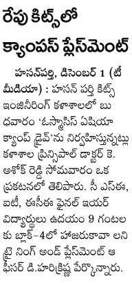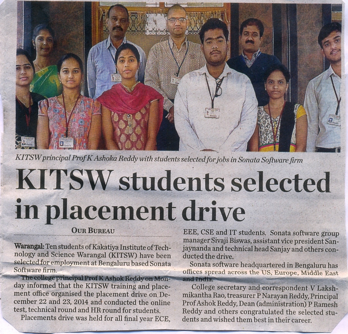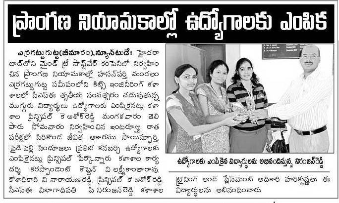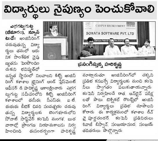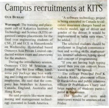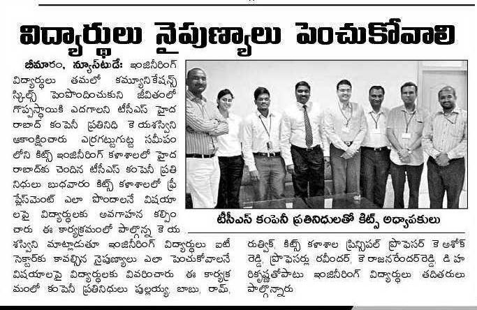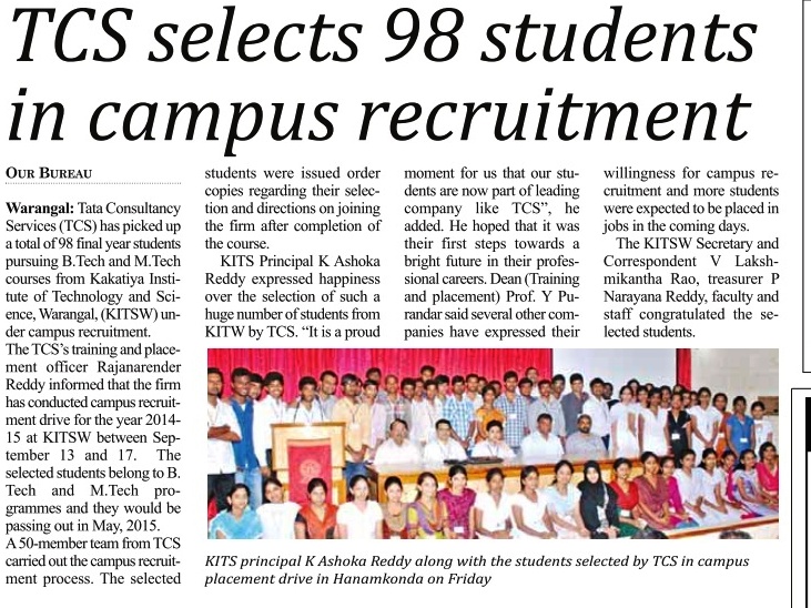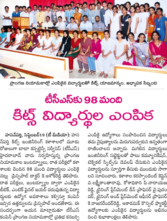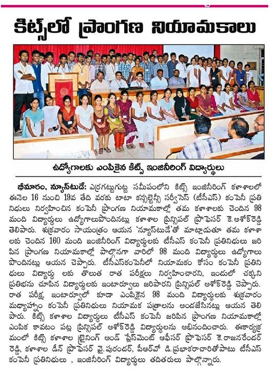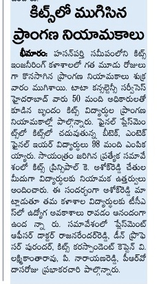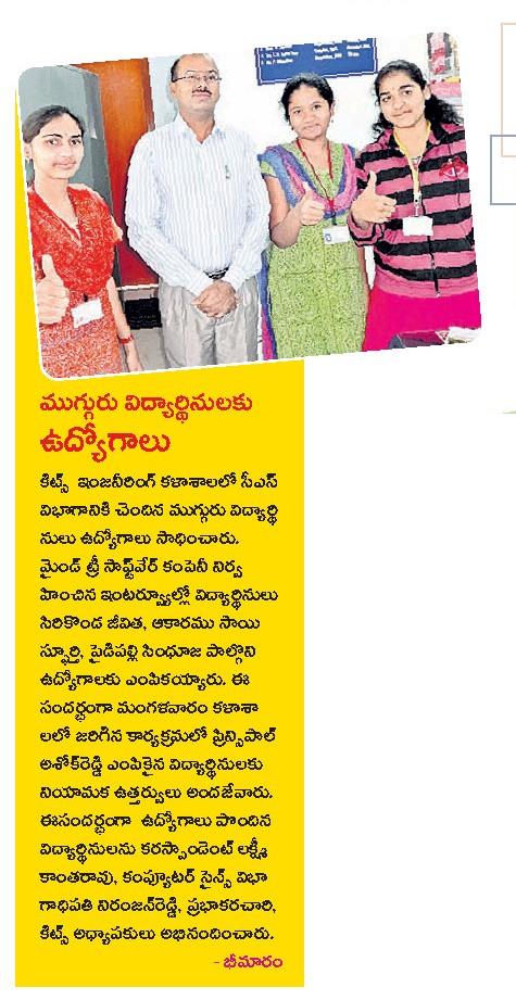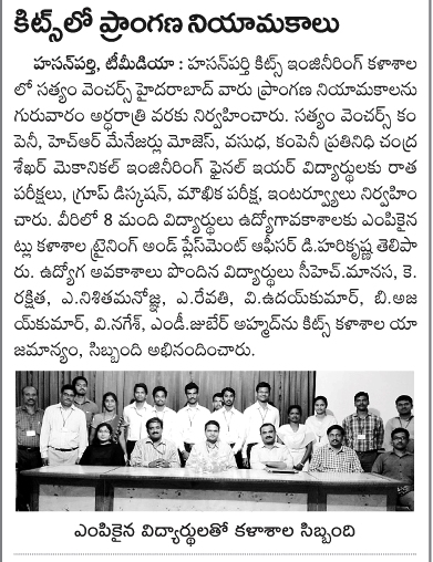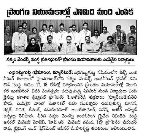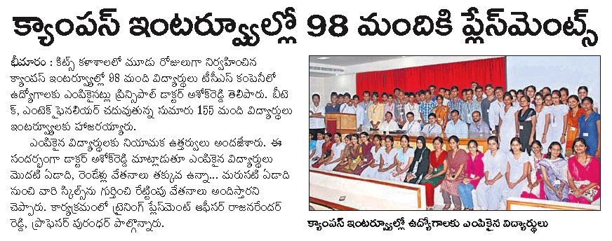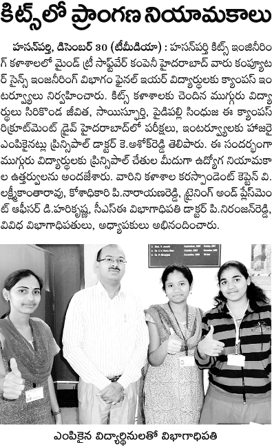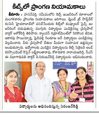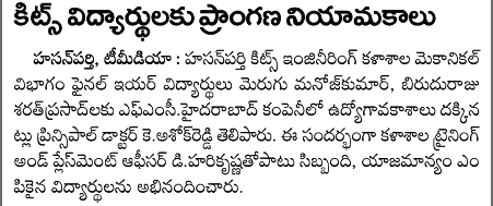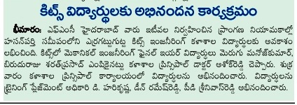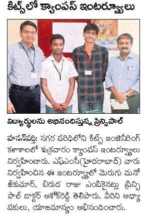 KITS Students Selected in FMC Hyd,Campus Placement Drive