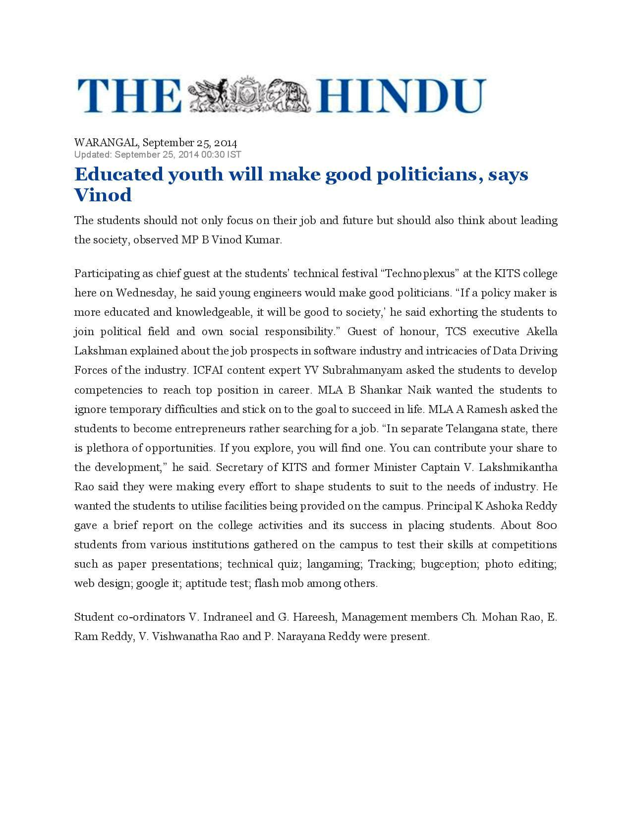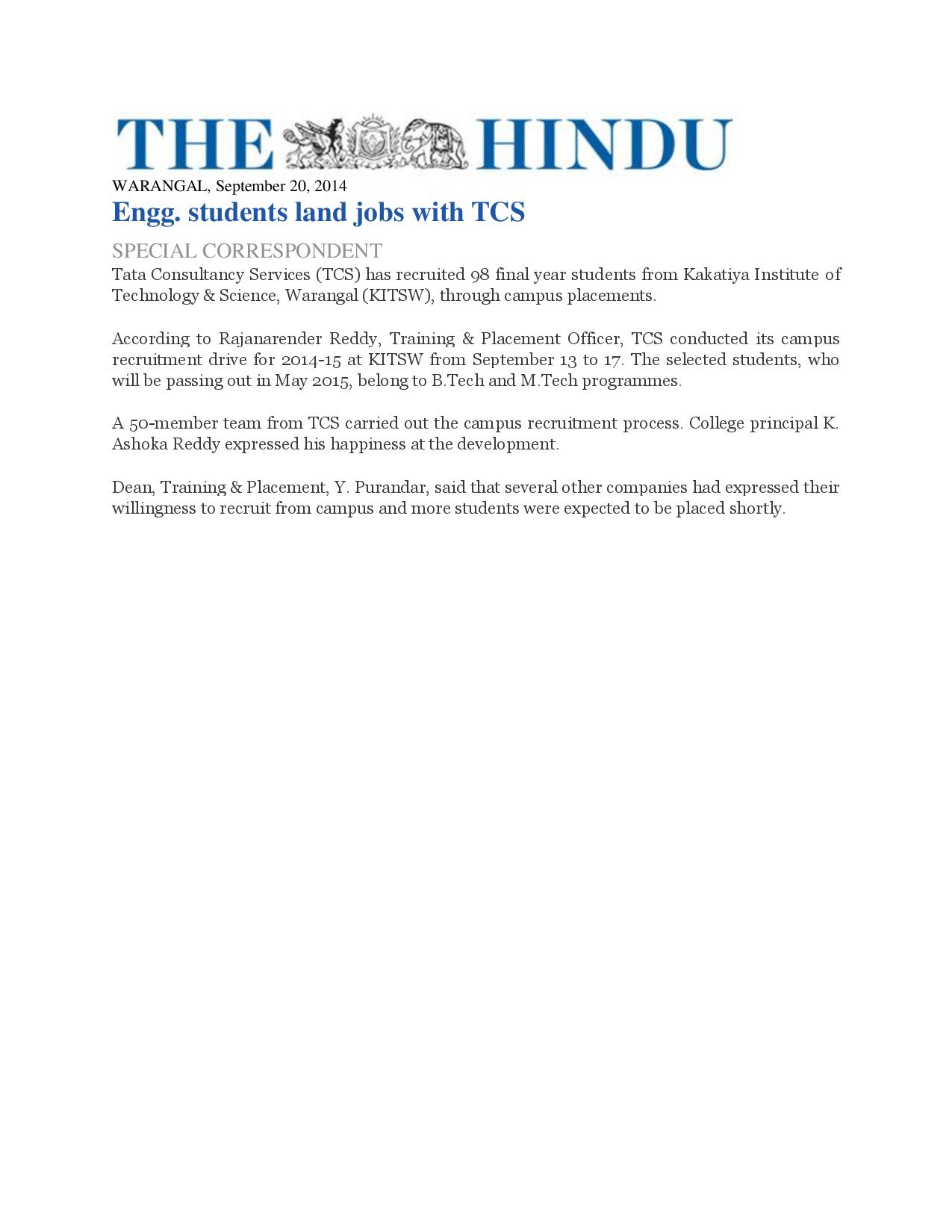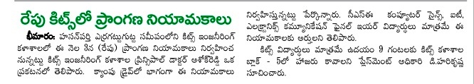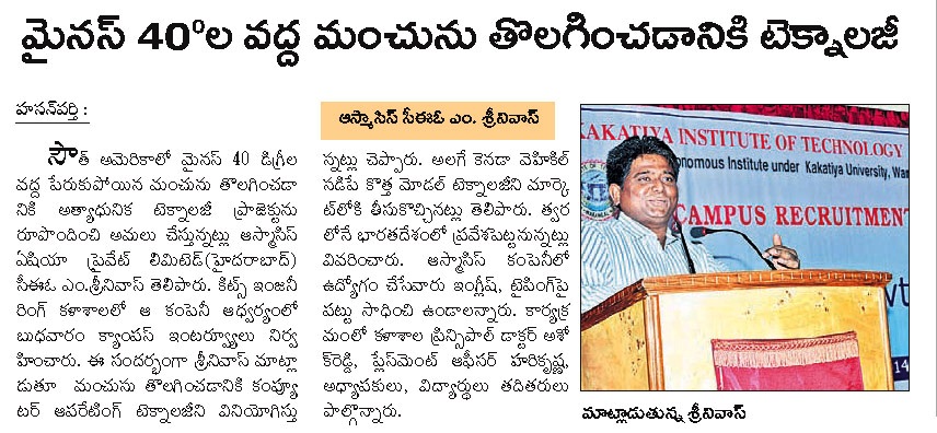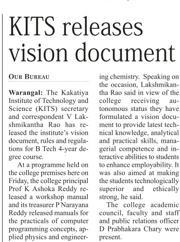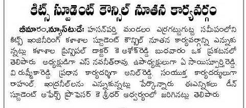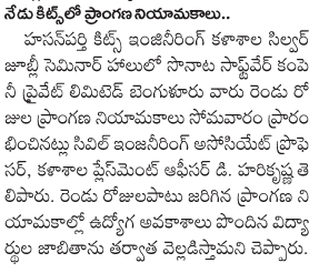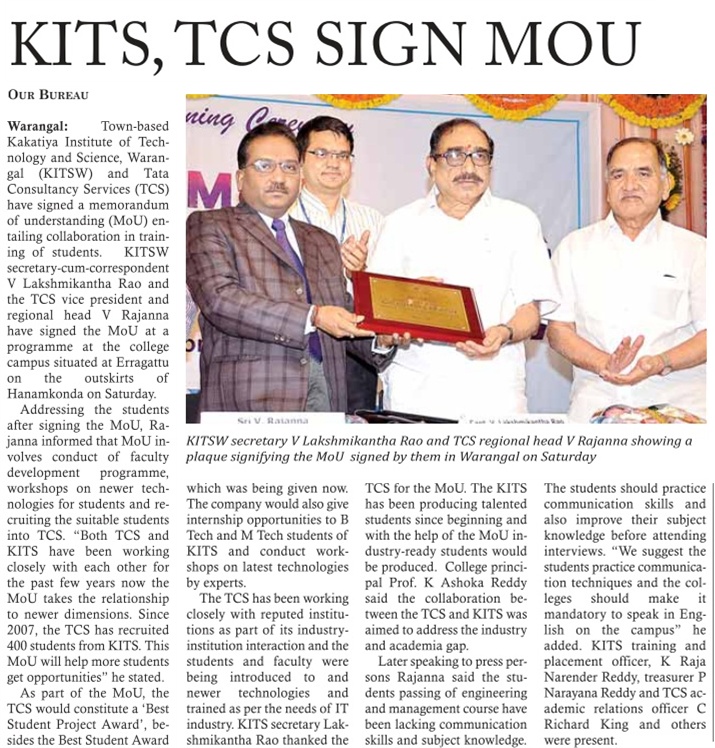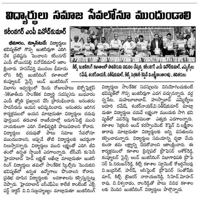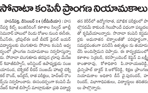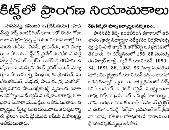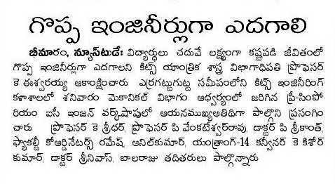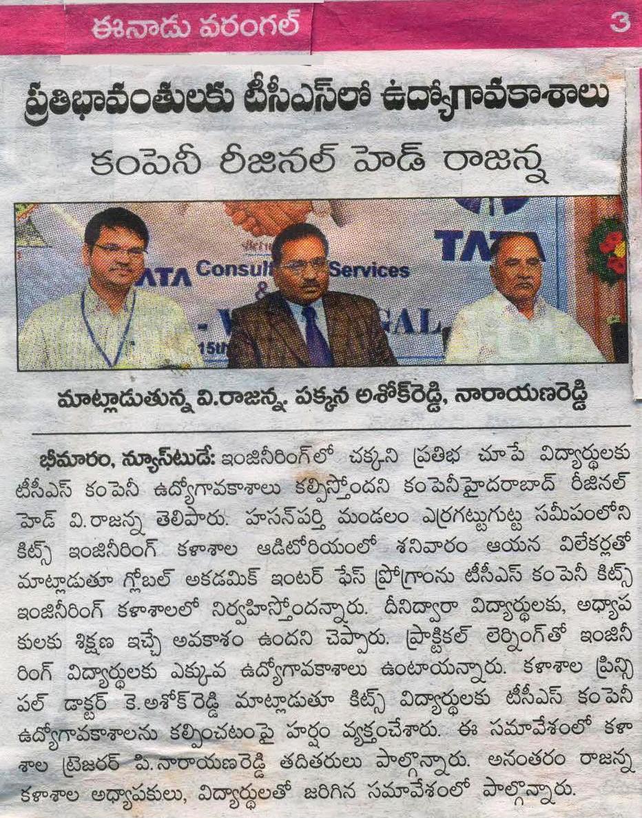 KITS Students Selected in FMC Hyd,Campus Placement Drive