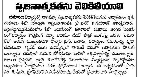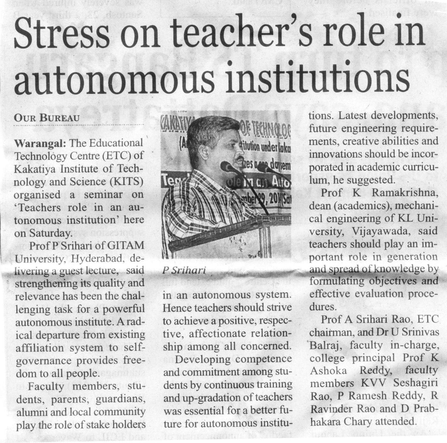 Seminar on "Students Counselling in Present Educational System - Teacher's Role" @ KITSW