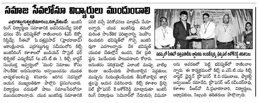 A Guest Lecture by Canada Prof.M. Madan Gupta on "Intelligent Systems" is organized @KITSW.