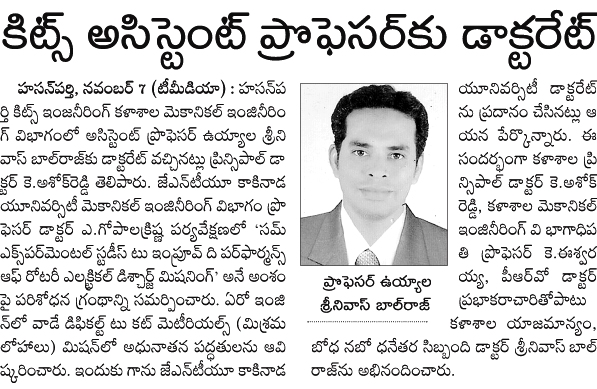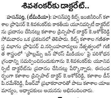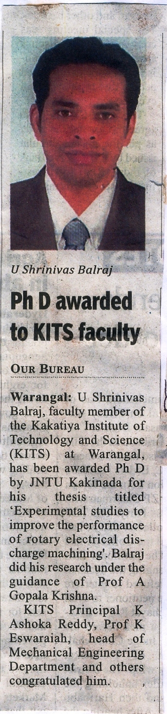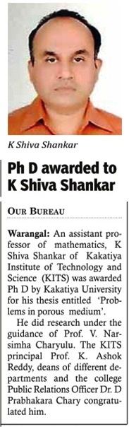 Ph.D. Awarded to Sri. K.Shiva Shankar