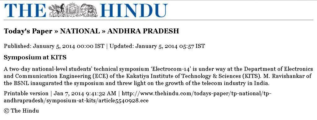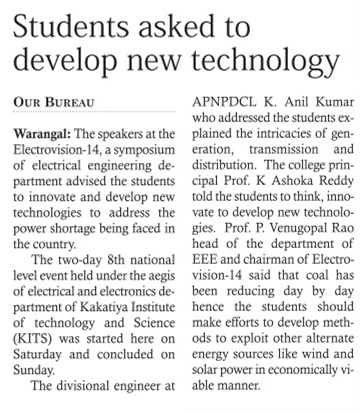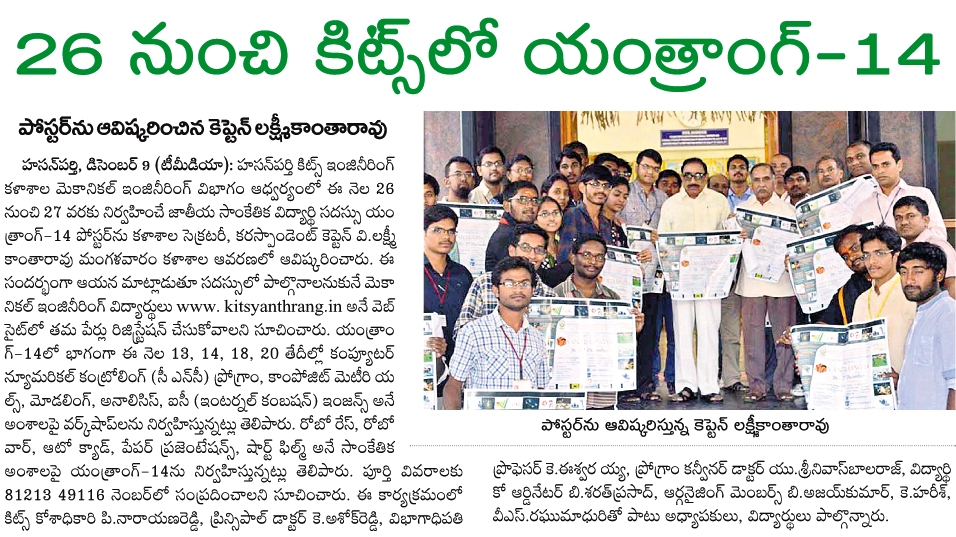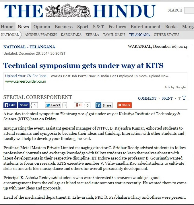 Technical Symposium Yantraang'14 gets under way at KITSW.