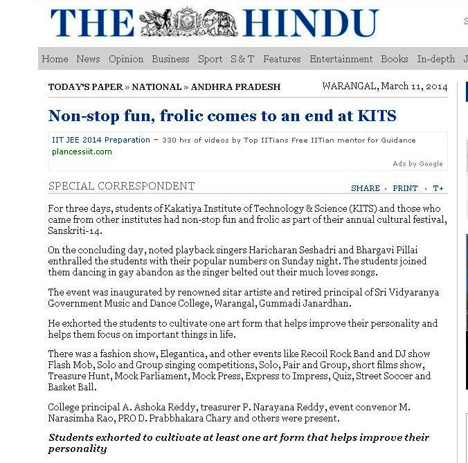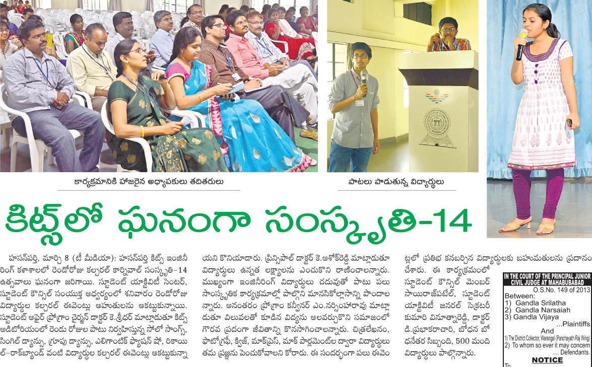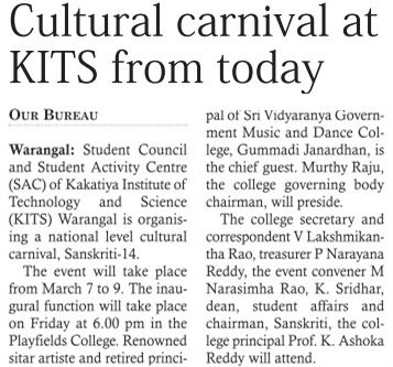 Cultural Carnival Sanskriti'14 begins at KITSW