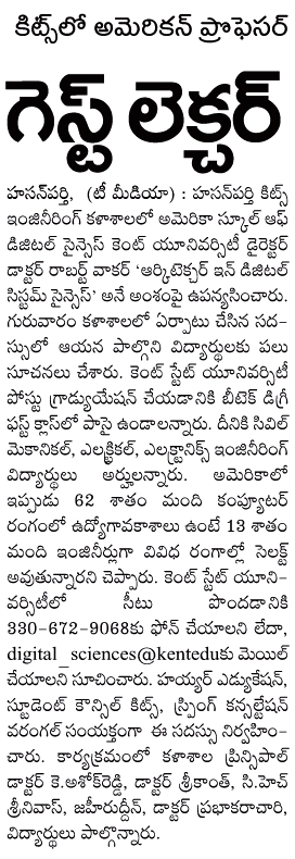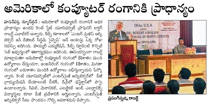 Guest Lecture on "Enterprises Architecture in Digital System Sciences" by Dr. Robert Awalker, Professor, Kent State University, U.S.A. @ KITSW