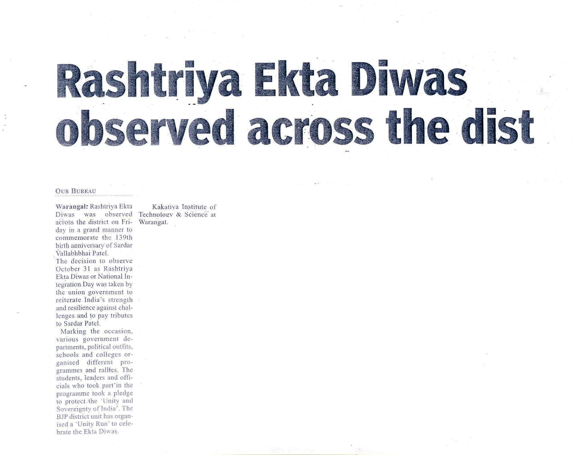 "Rashtriya Ekta Diwas" Celebrations at KITSW.