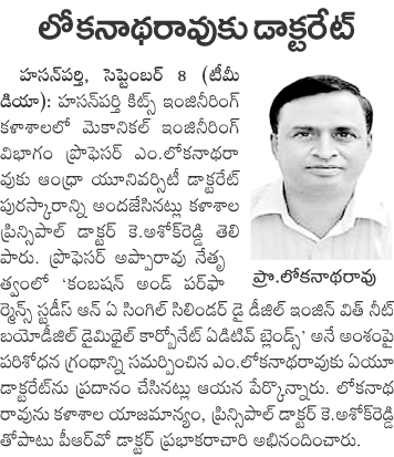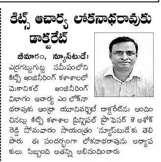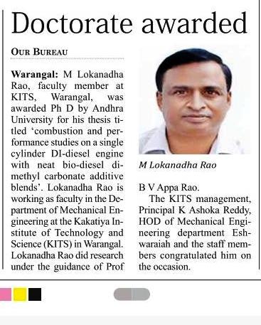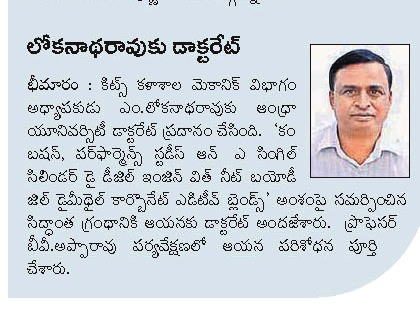 Doctorate awarded to Sri M.Lokanadha Rao.