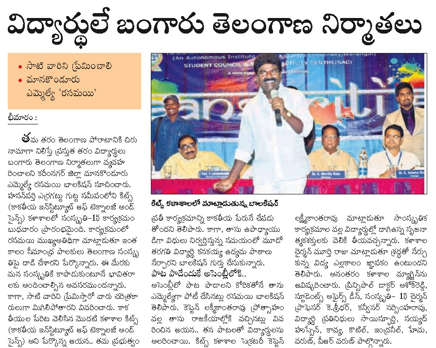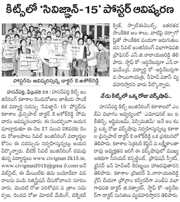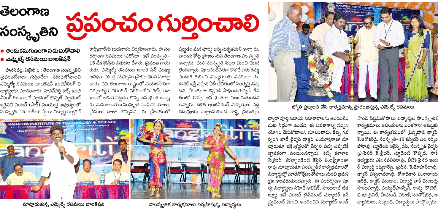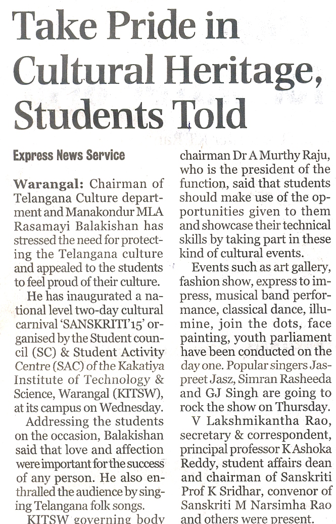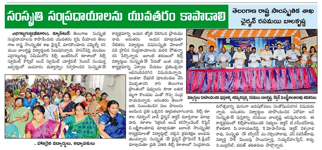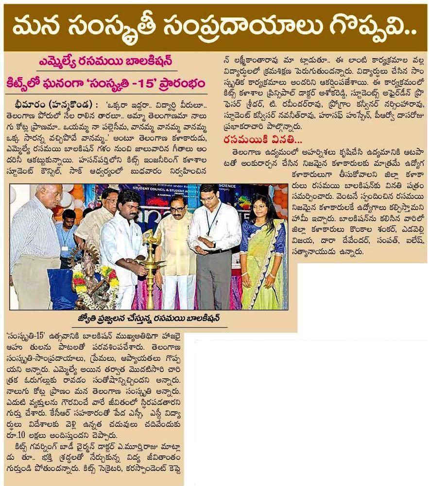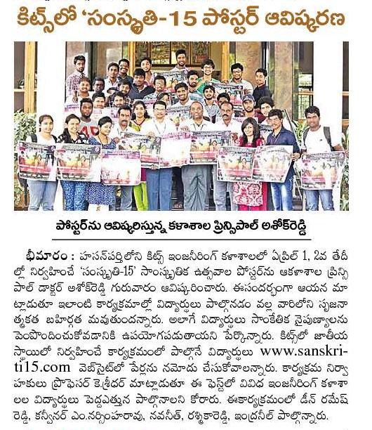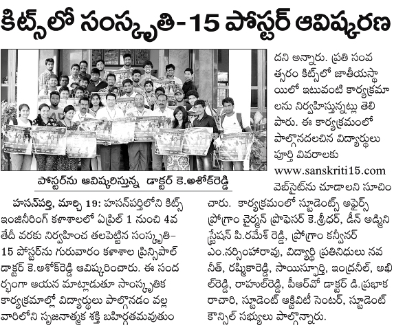 'Sanskriti-15' A Two Day National Cultural Festival,Poster Release-KITSW