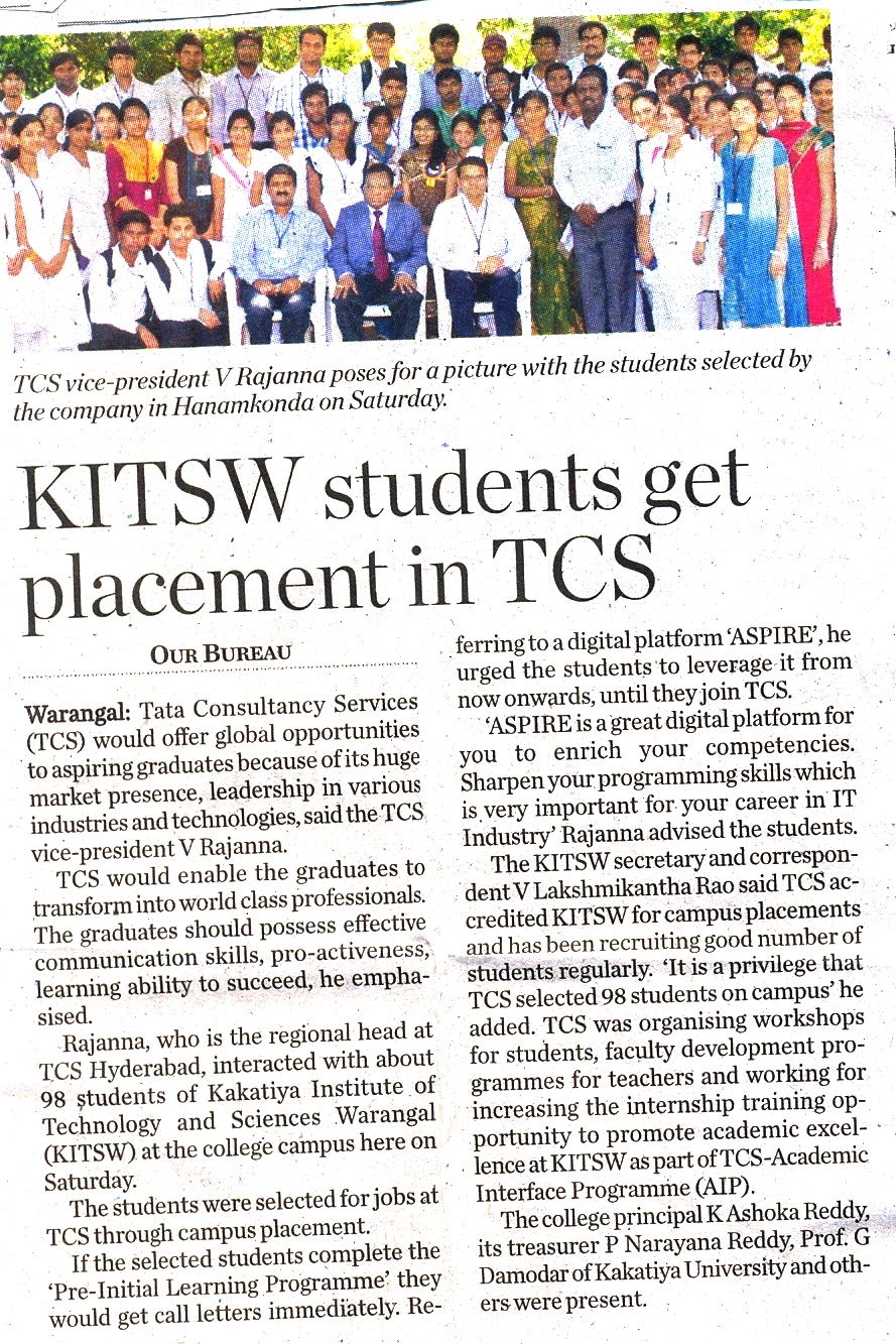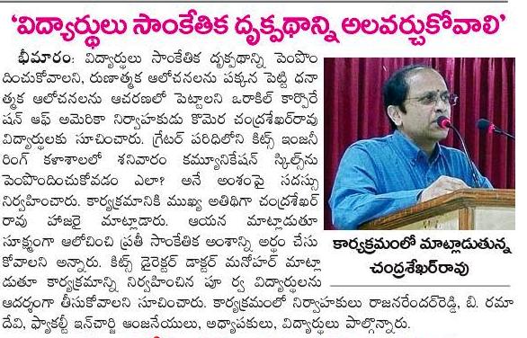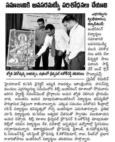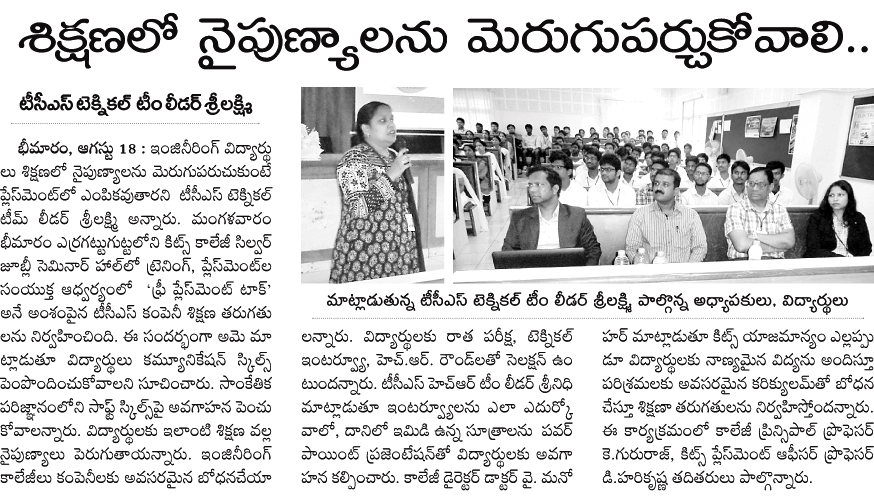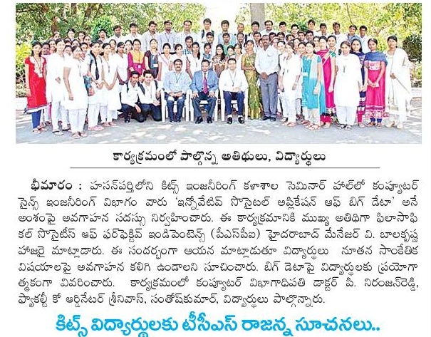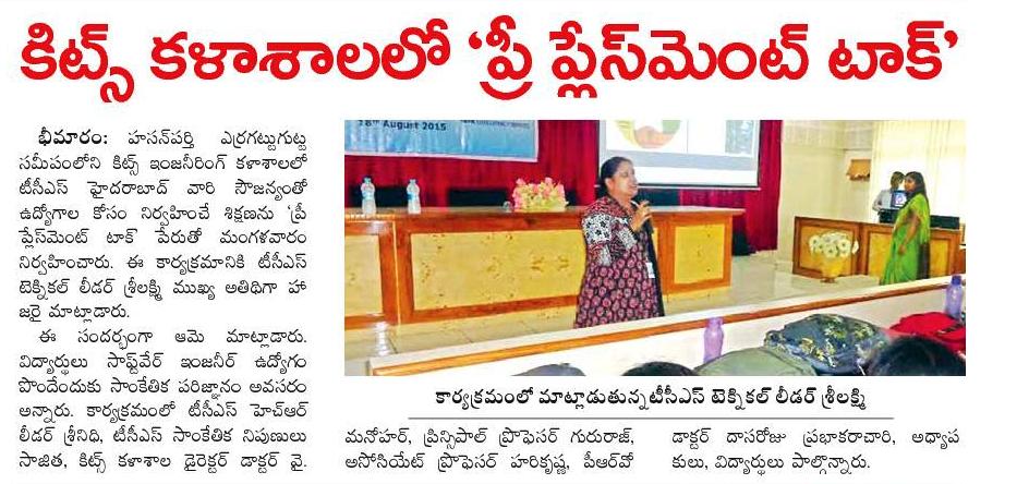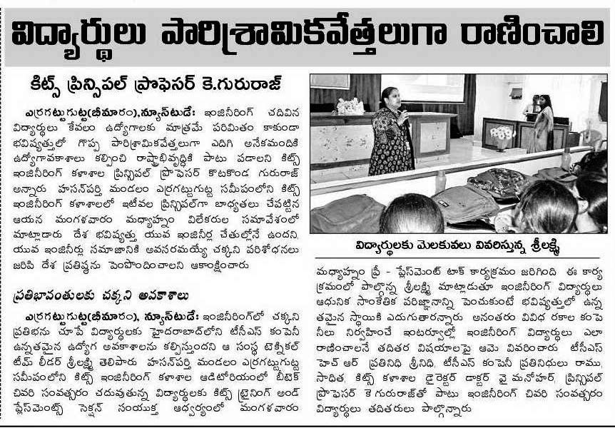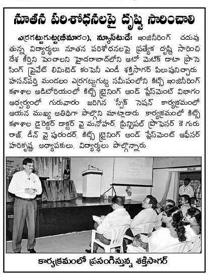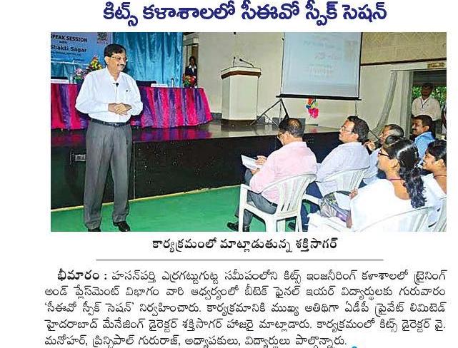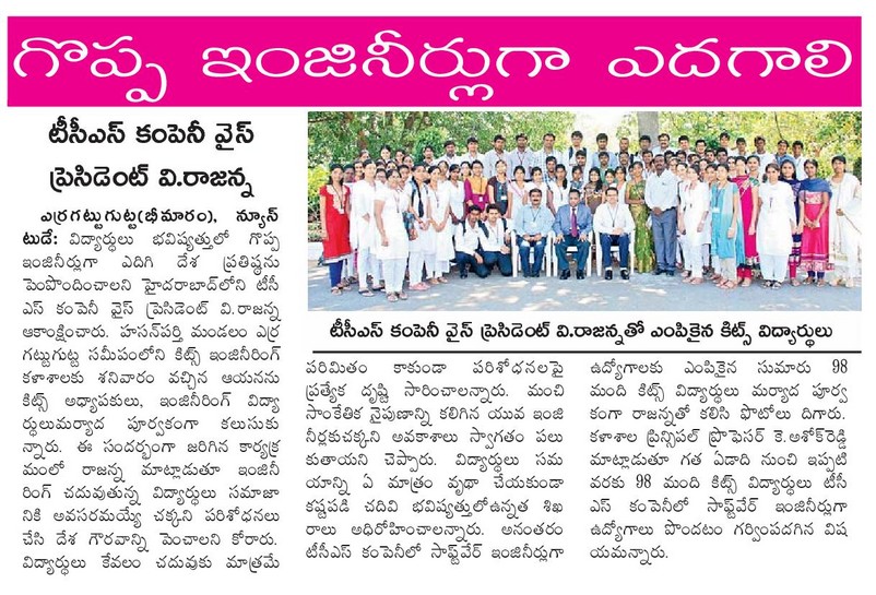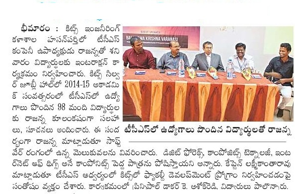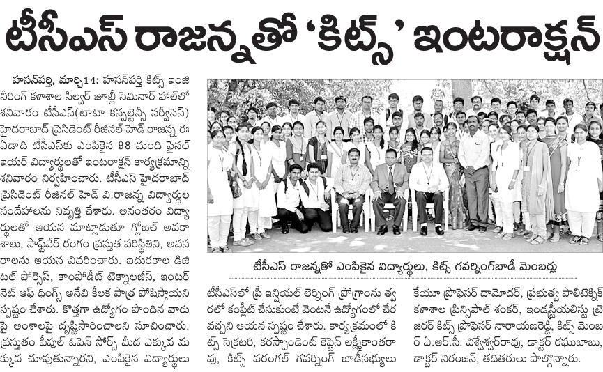 TCS Hyderabad, President& Regional Head, Sri.V.Rajanna Interacted with KITSW students