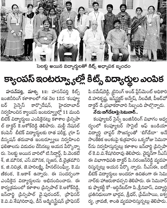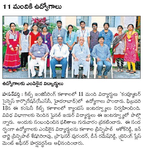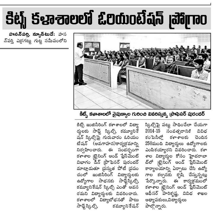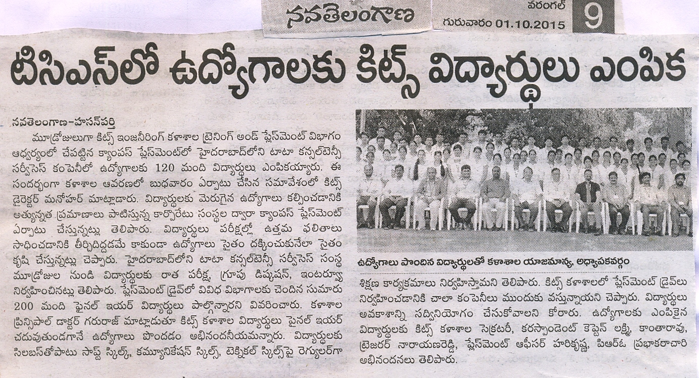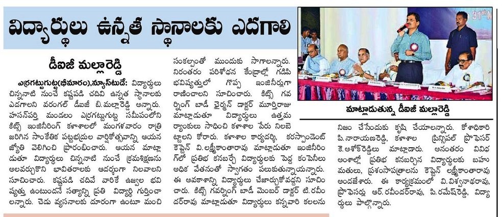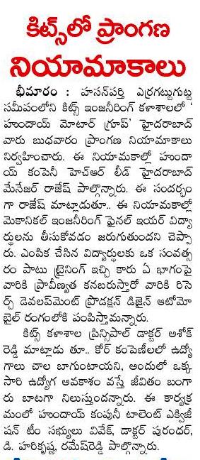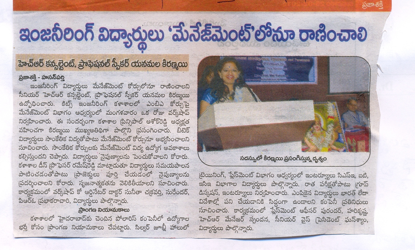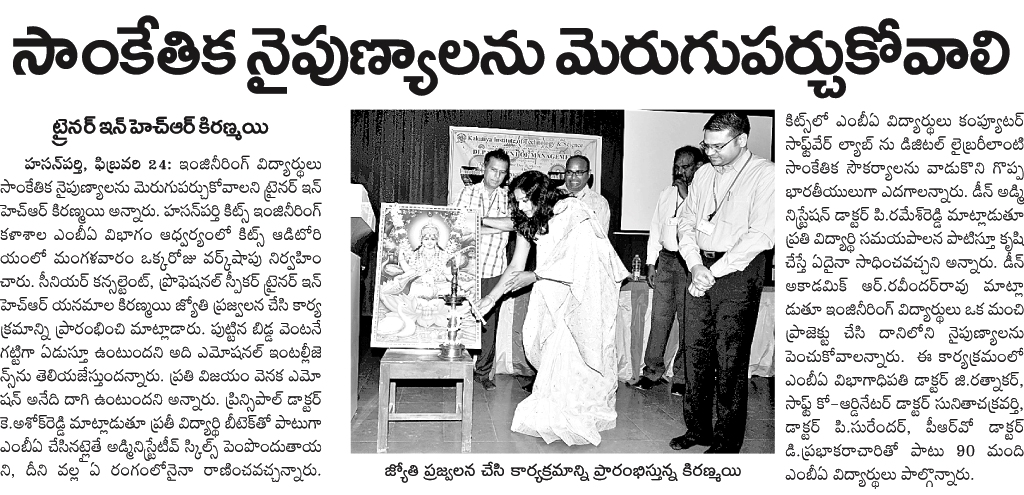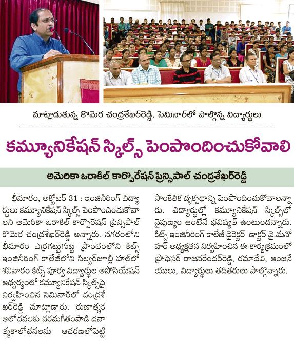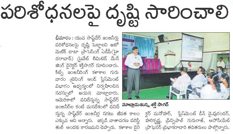 TCS Hyderabad, President& Regional Head, Sri.V.Rajanna Interacted with KITSW students