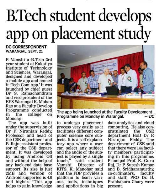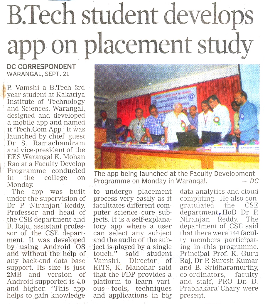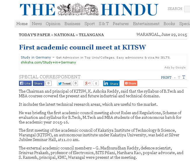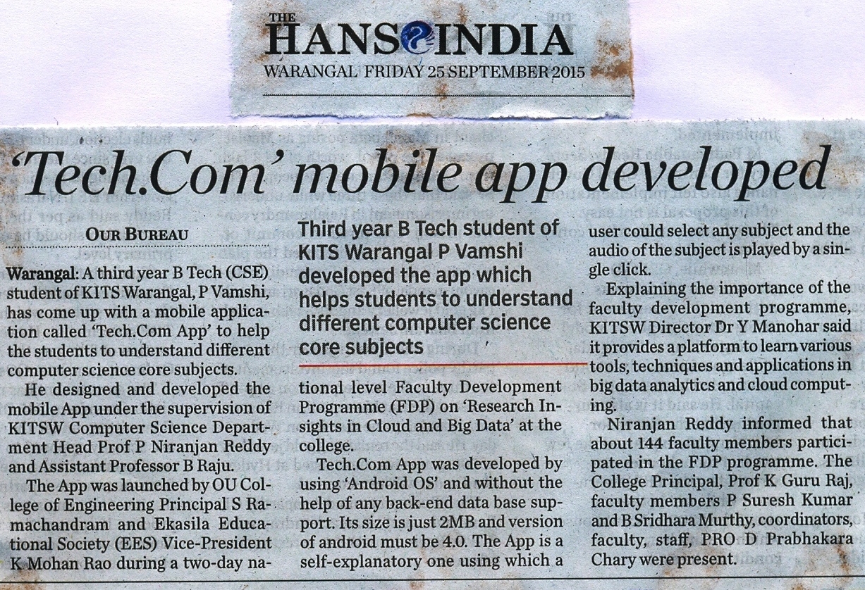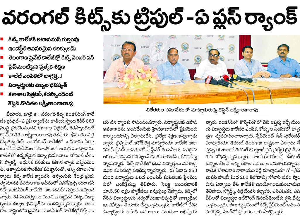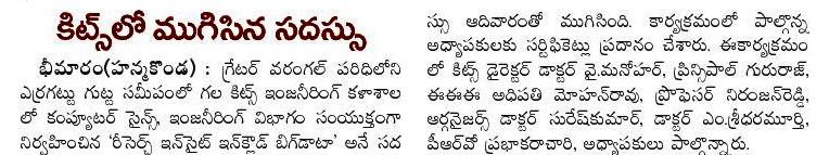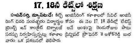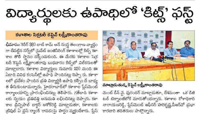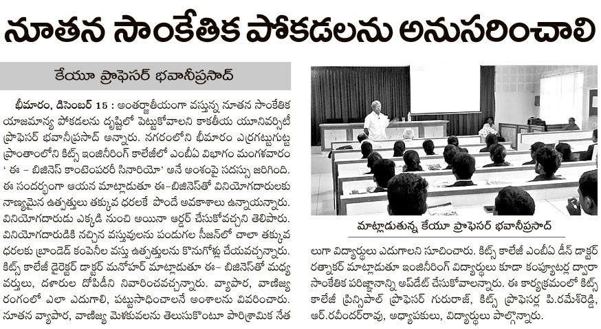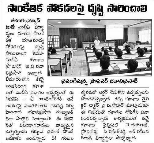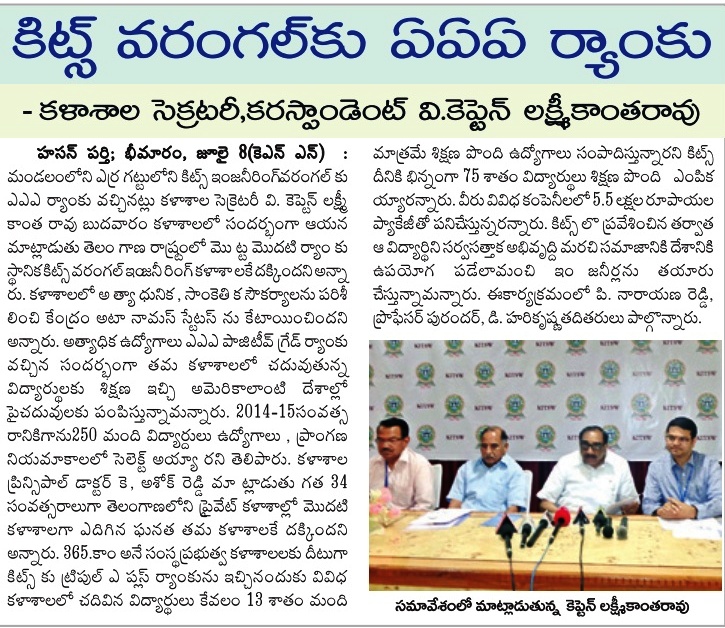 TCS Hyderabad, President& Regional Head, Sri.V.Rajanna Interacted with KITSW students