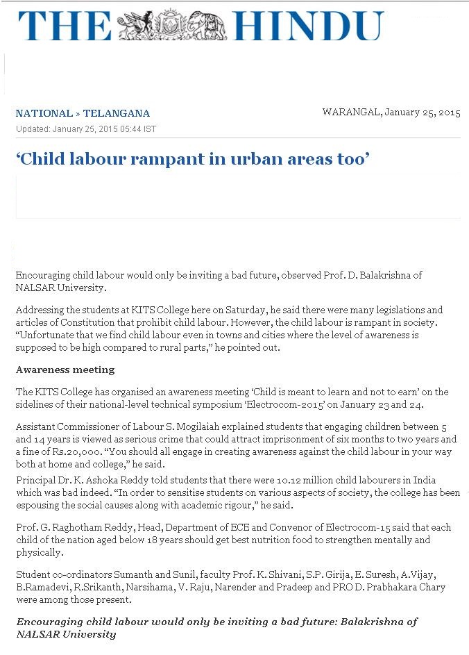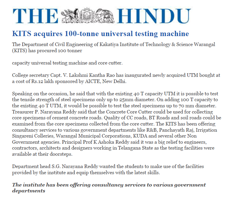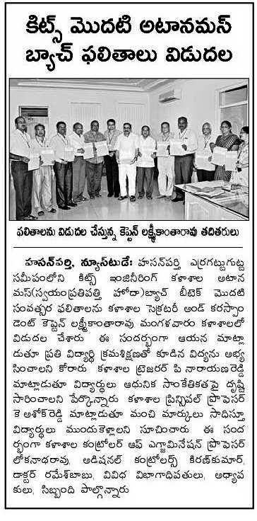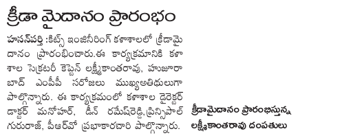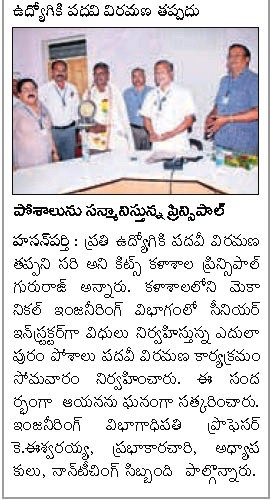 An article on secretary and correspondent Laxmikantha Rao Garu