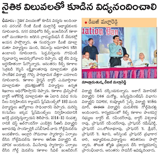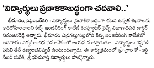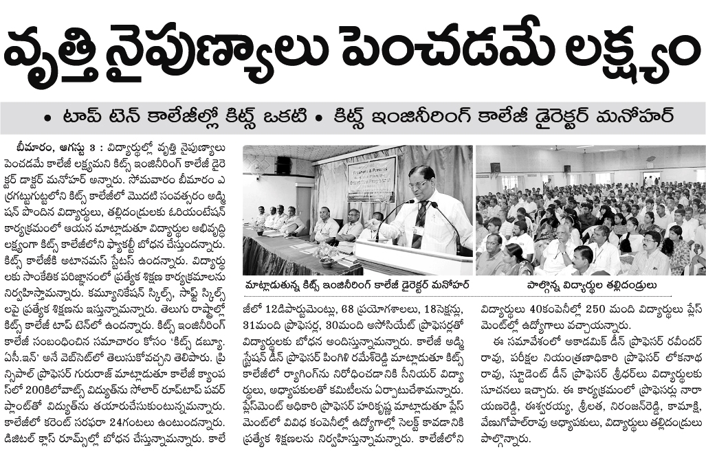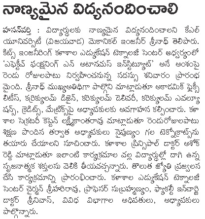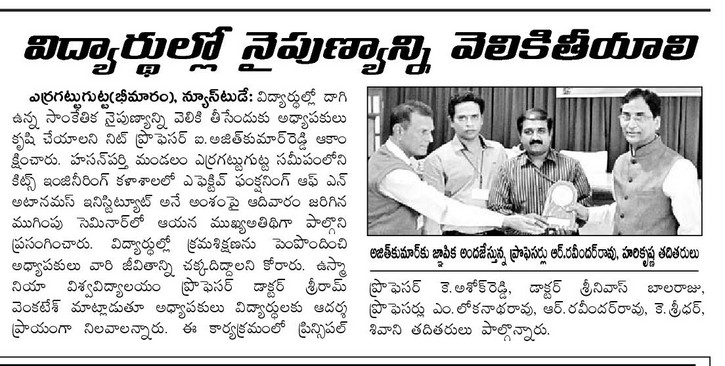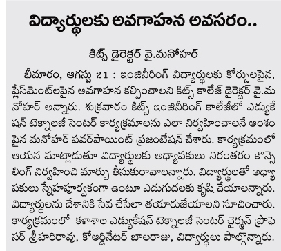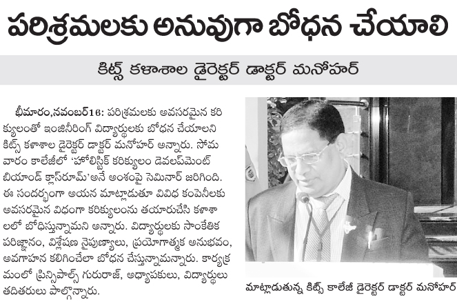 Holistic Curriculum Development Beyond the Class Room addressed by Director -KITSW