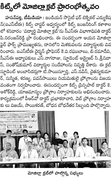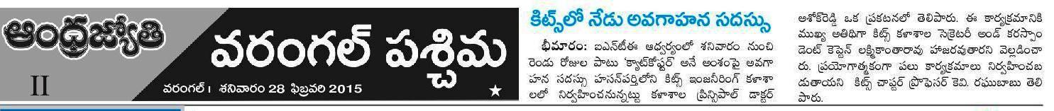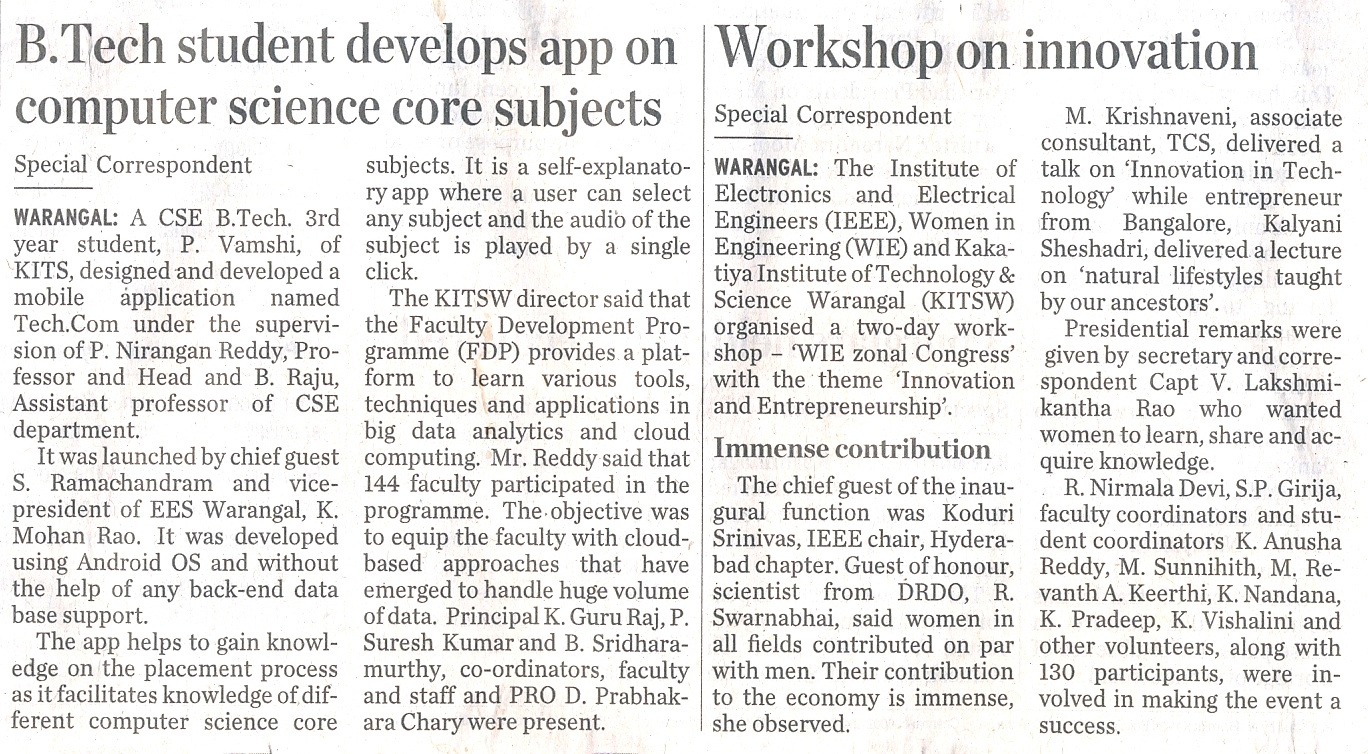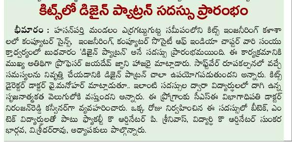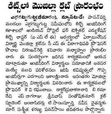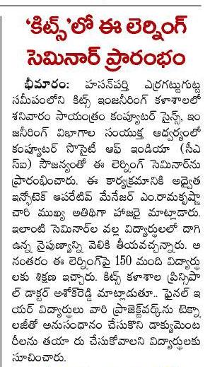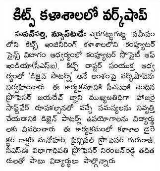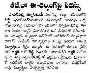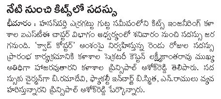 ISTE Chapter sponsored a two day work shop on "Quad Copter" -KITSW