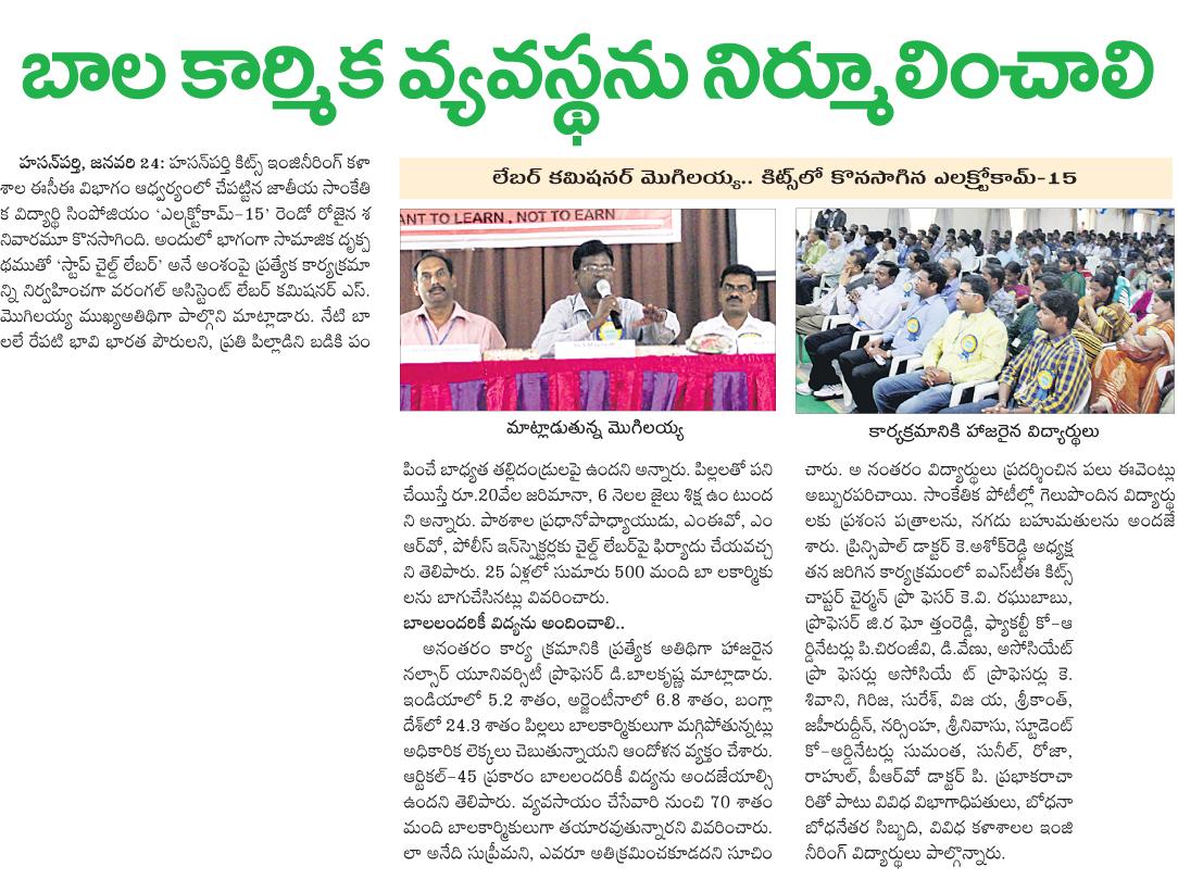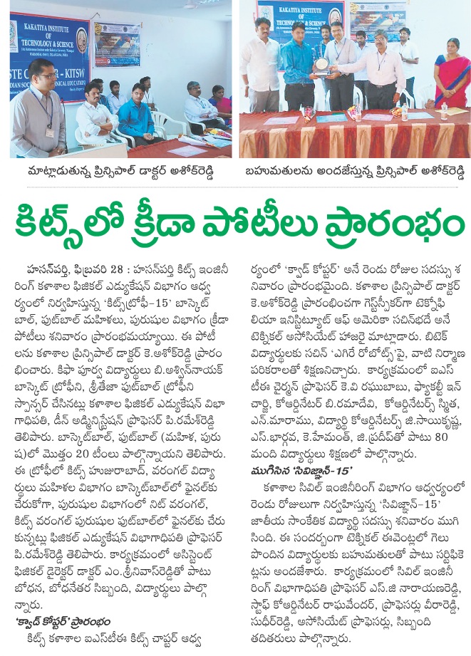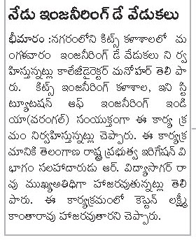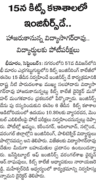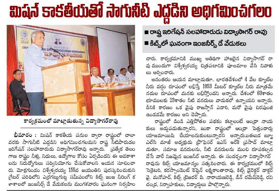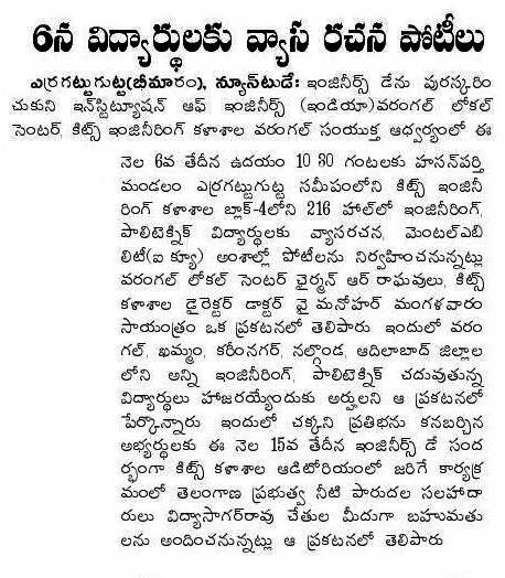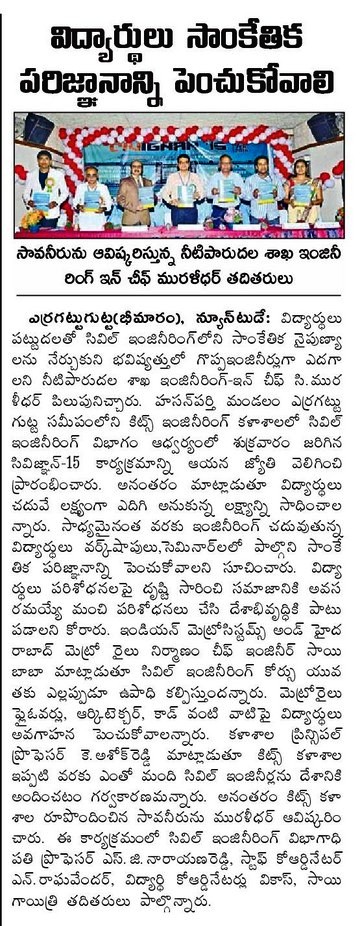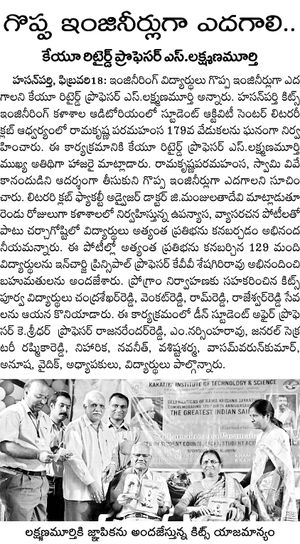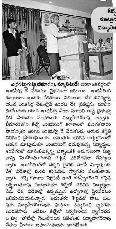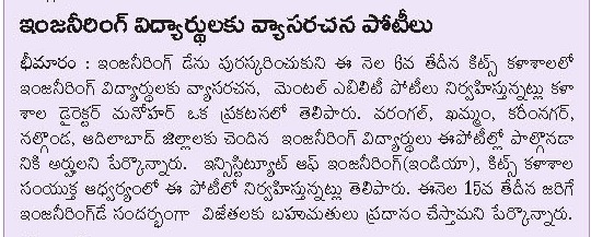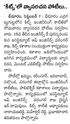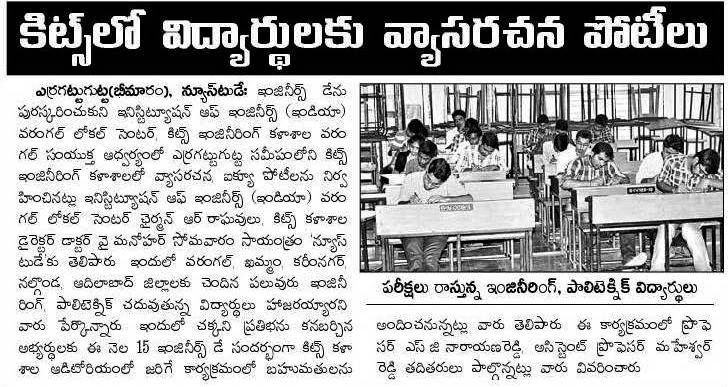 Essay Competition conducted in KITSW on the eve of Engineers Day